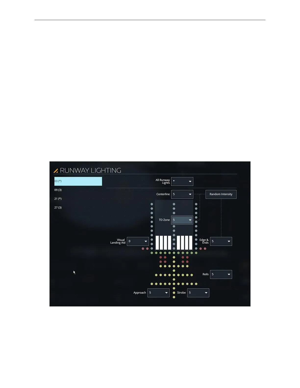 The RUNWAY LIGHTING sliding panel offers all the necessary controls to alter the