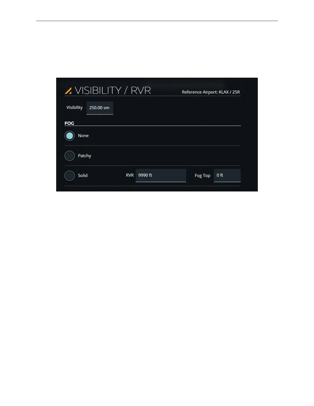The VISIBILITY / RVR sliding panel allows the instructor to change visibility