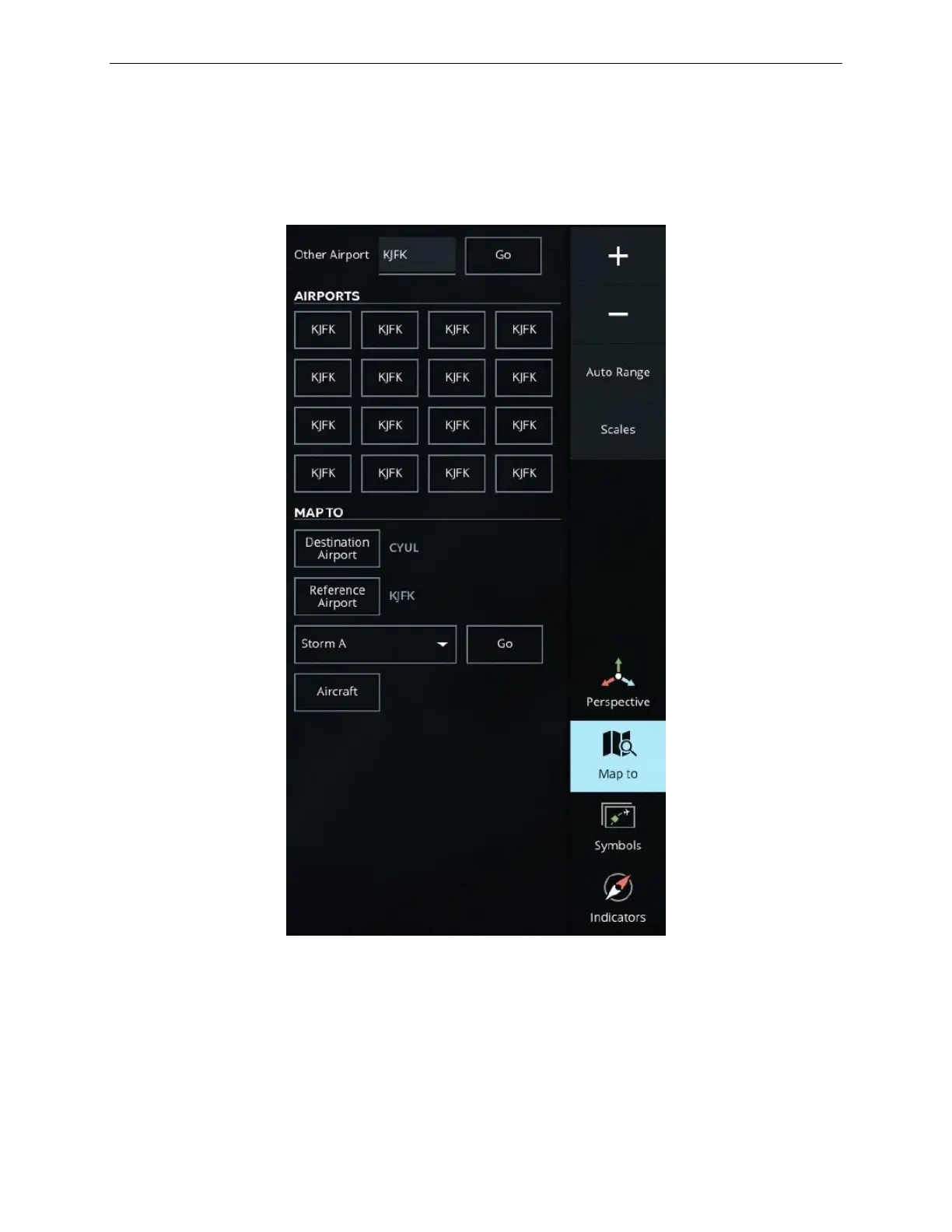Tap the Map to button to center the map to the selected element (airport, aircraft and