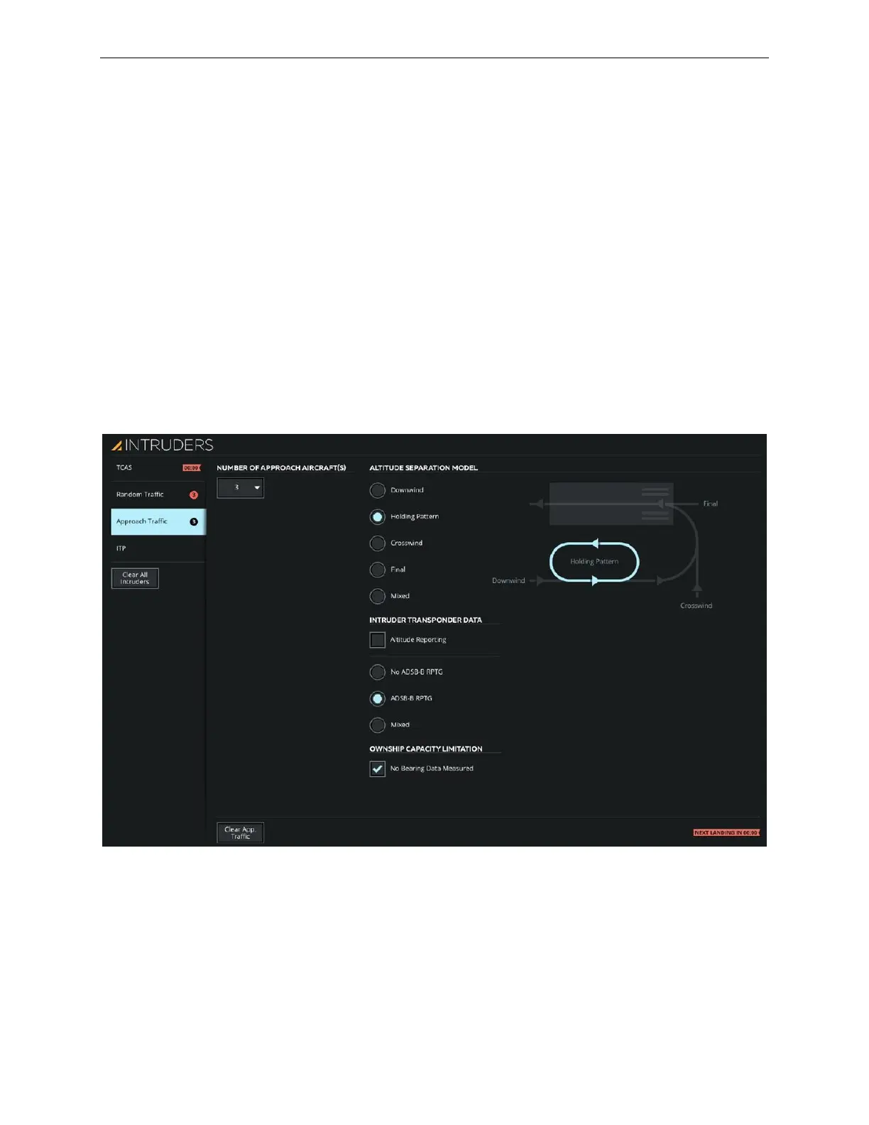 • Select the transponder settings of intruders and ownship capacity limitation