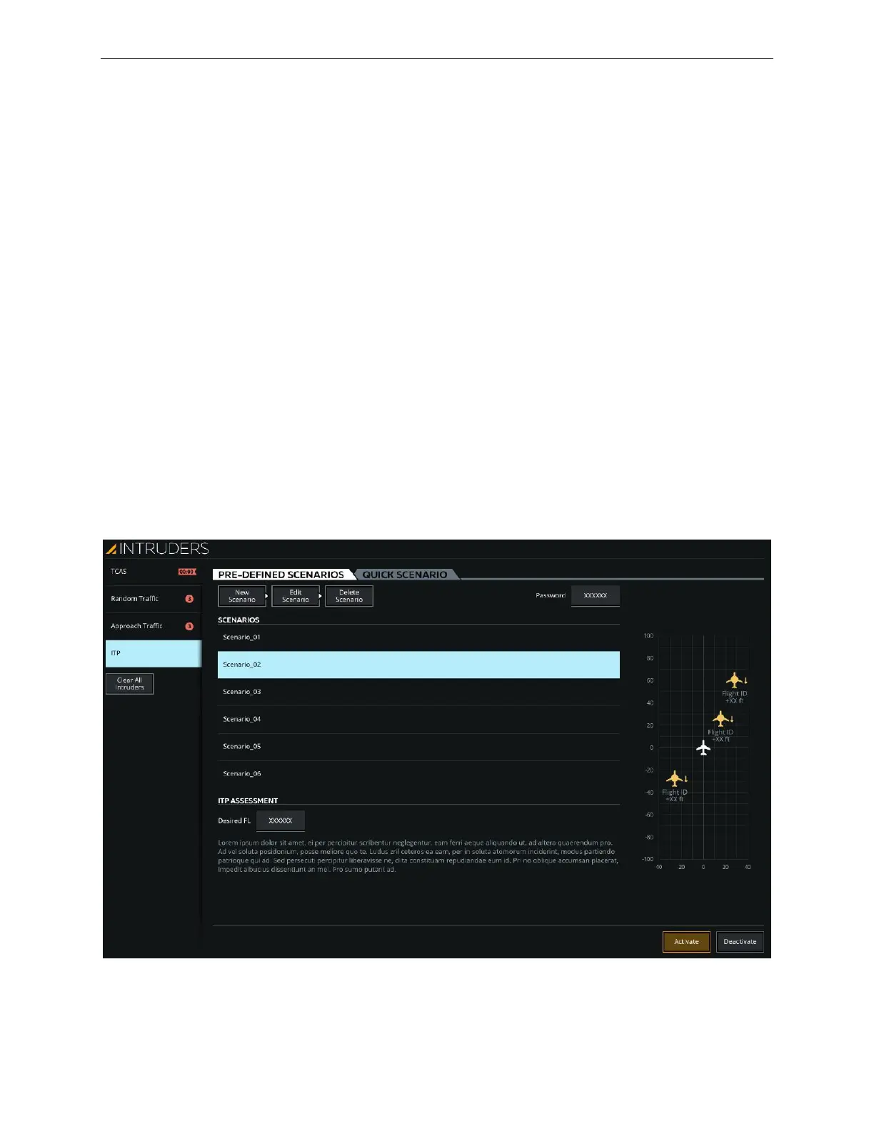 The instructor selects an ITP scenario, enters the desired Flight Level and observes