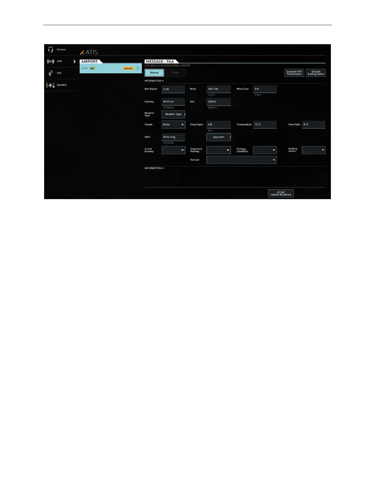 the instructor to modify some of the ATIS parameters. When the ATIS Manual mode
