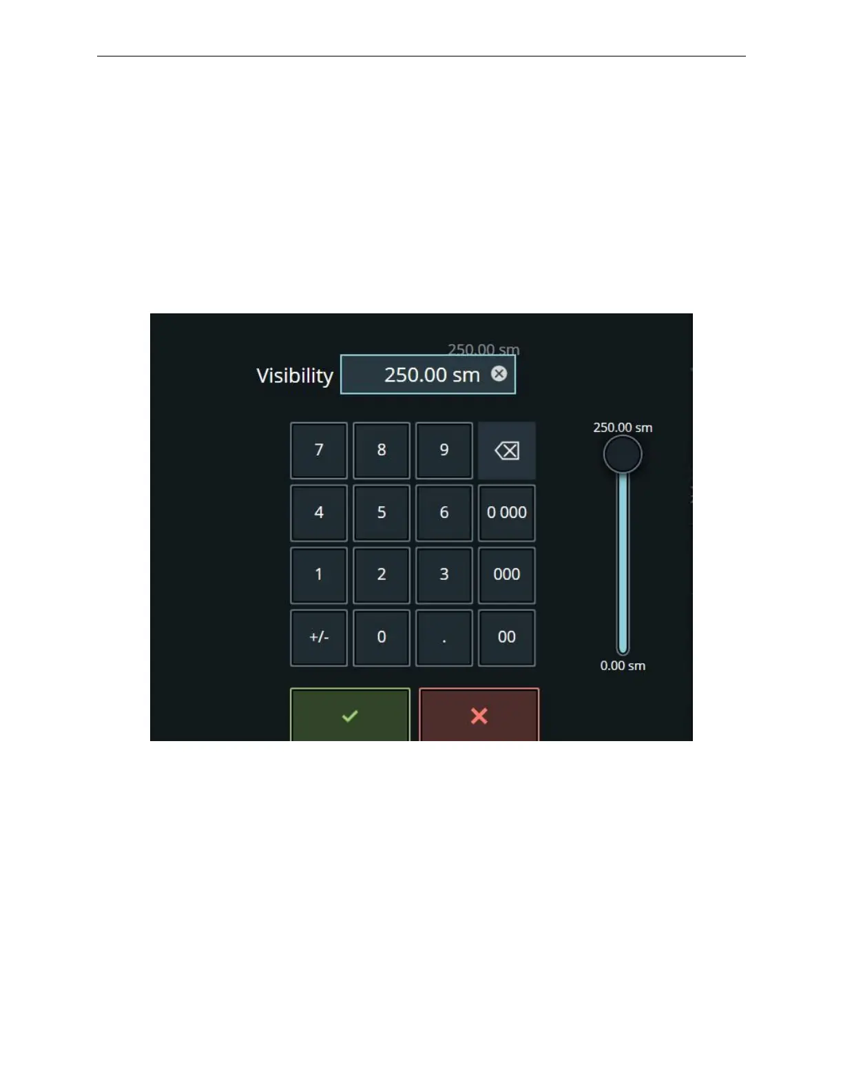 The green checkmark confirms the entry and the red X cancels the entry.