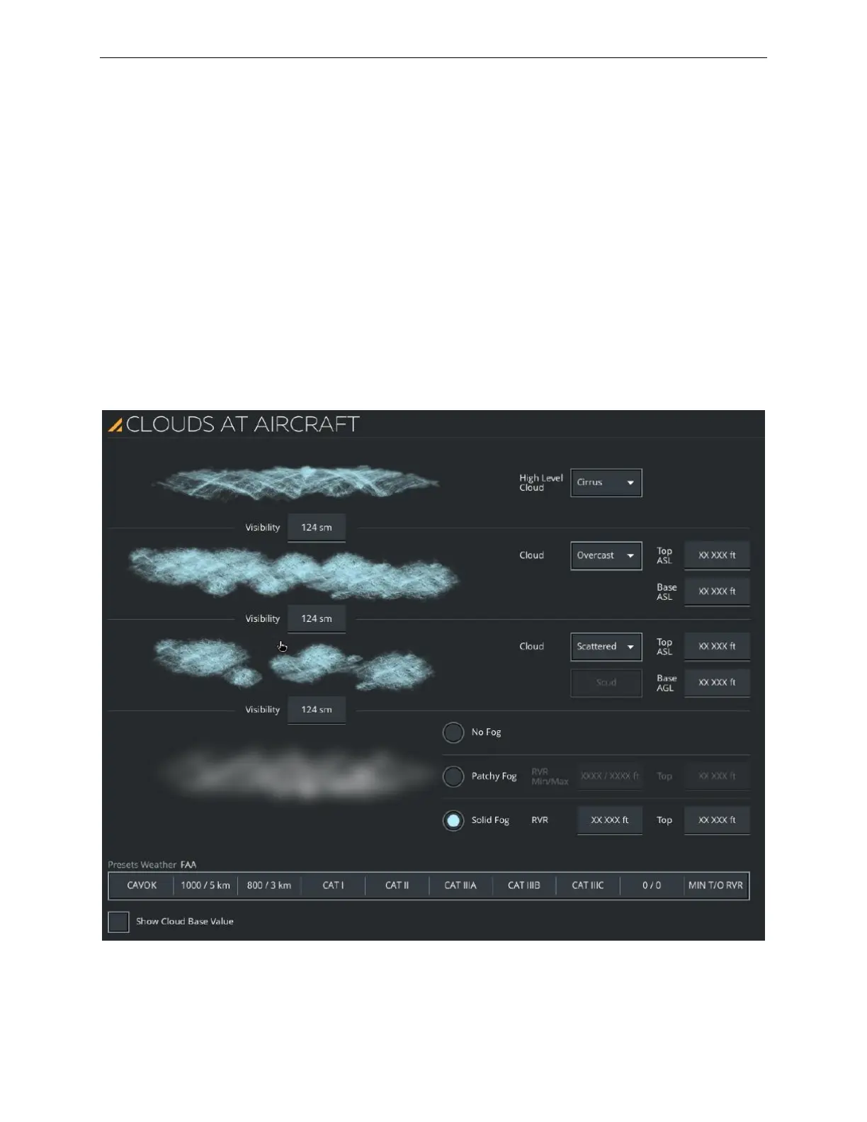 • Dropdown buttons to select the types of clouds and cloud density