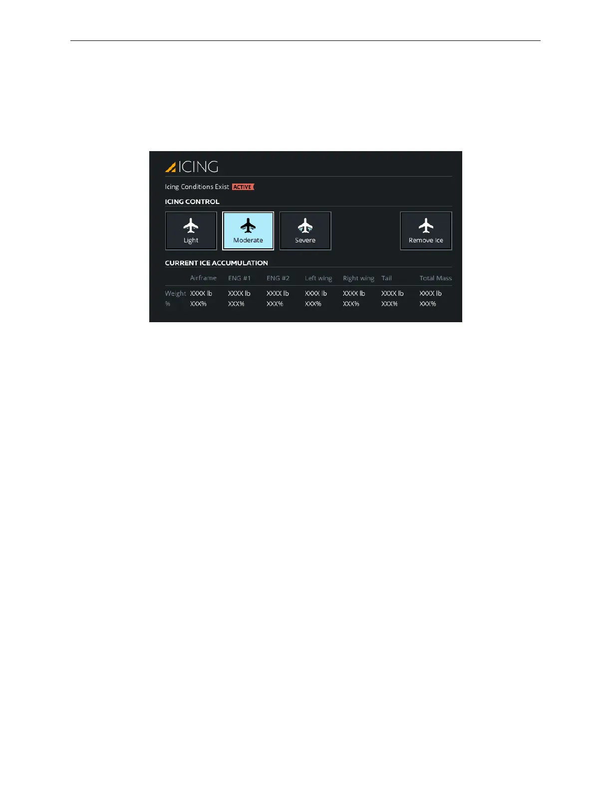 The ICING sliding panel allows the instructor to control the icing conditions on the