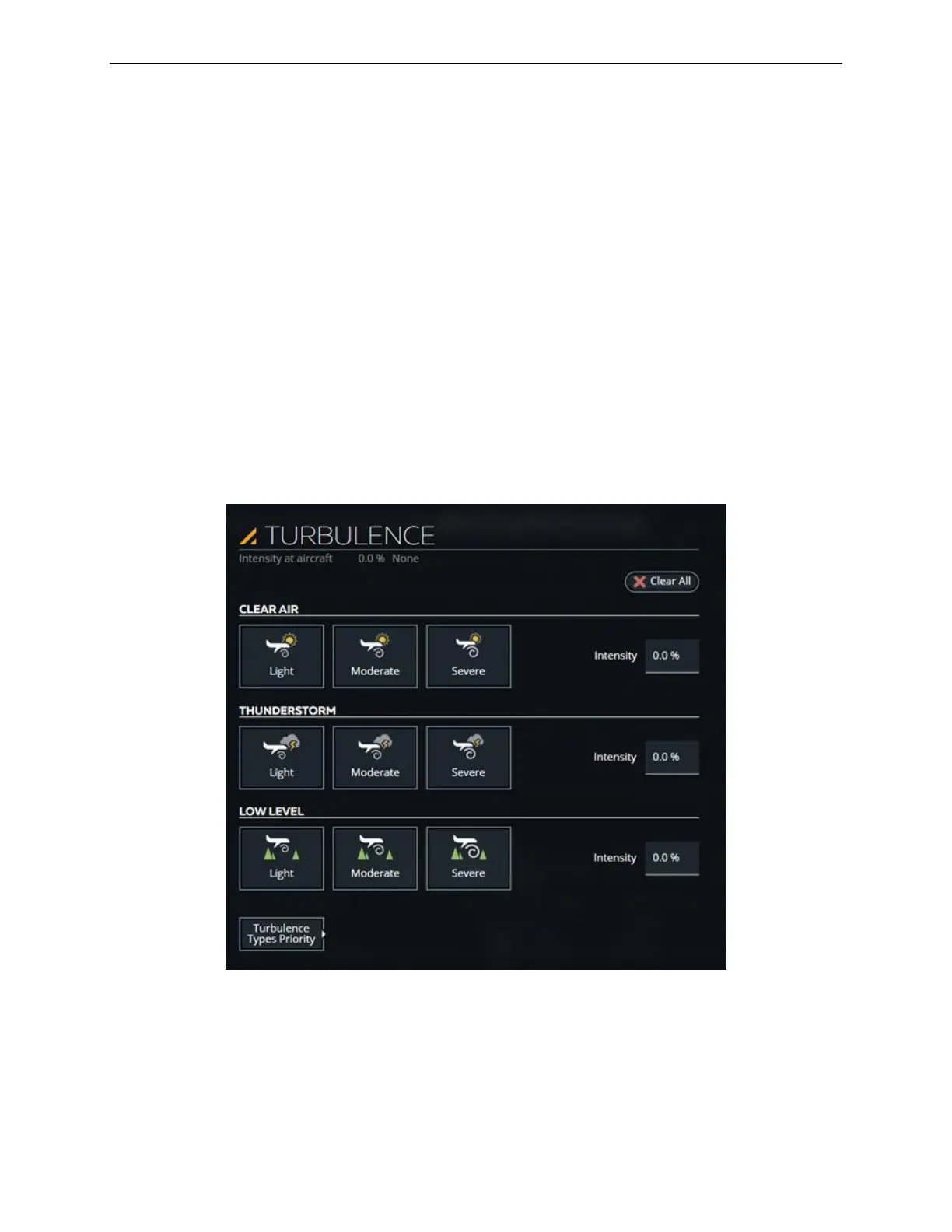 The TURBULENCE sliding panel allows the instructor to select various types of