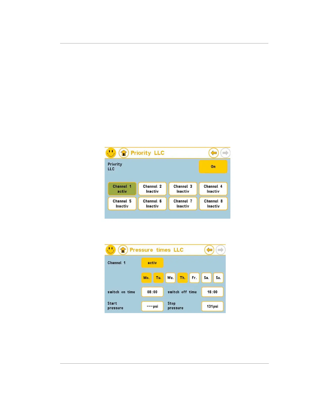 Figure 20: Page 1 of channel settings for times for basic load cycle priorities.