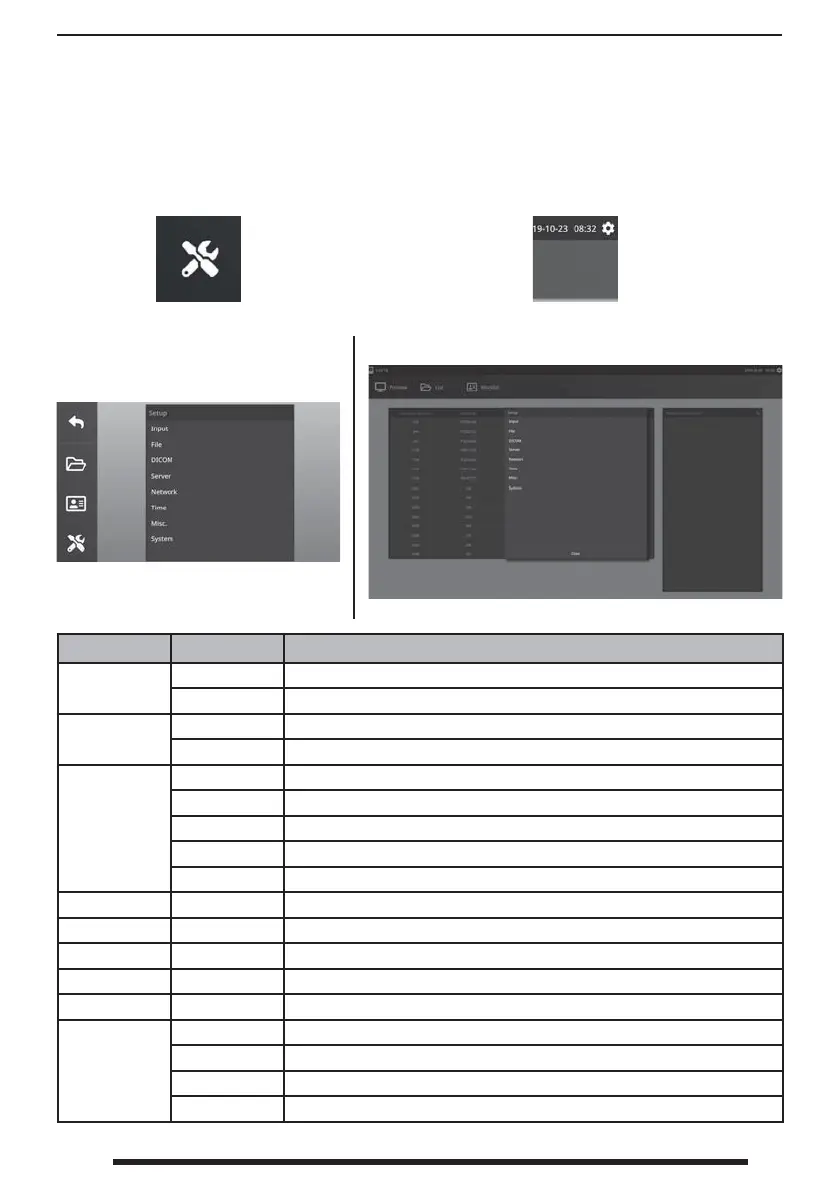 Select the SETUP icon, wrench image on LCD or gear image on external monitor, to manage