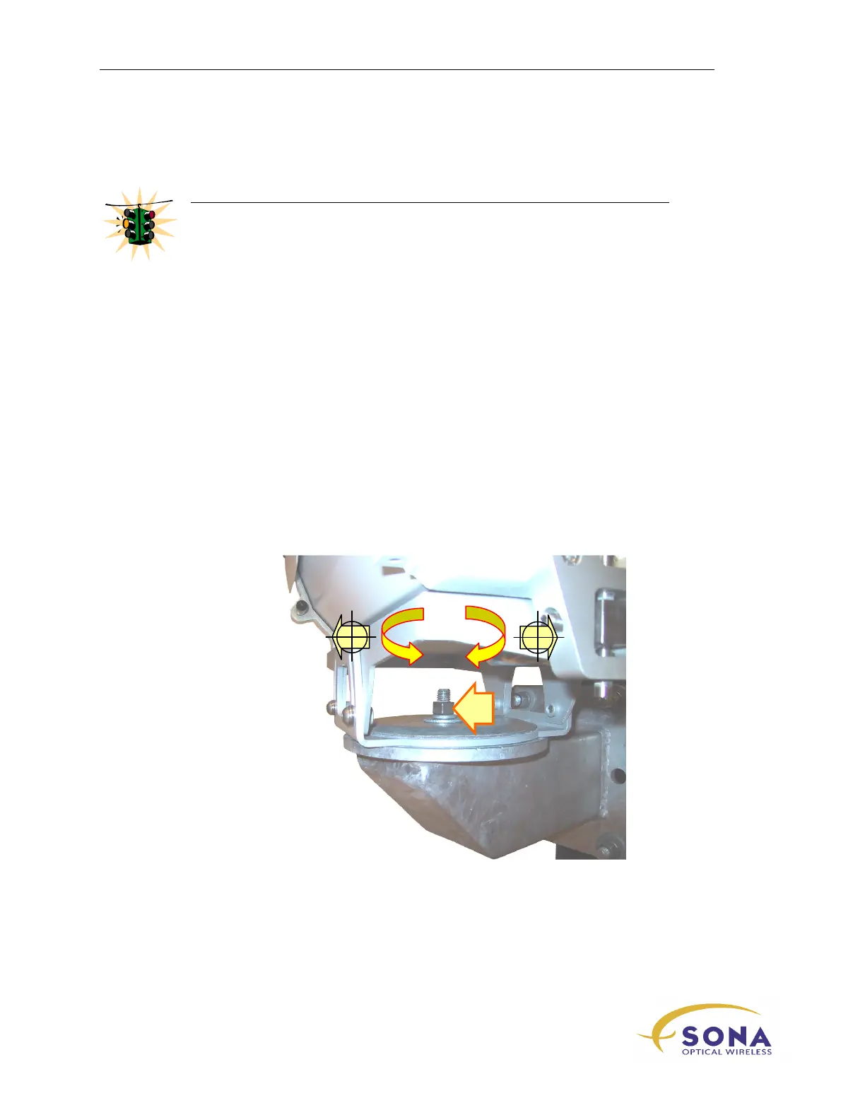 Coarse azimuth adjustment is achieved by loosening the nut that secures the terminal’s