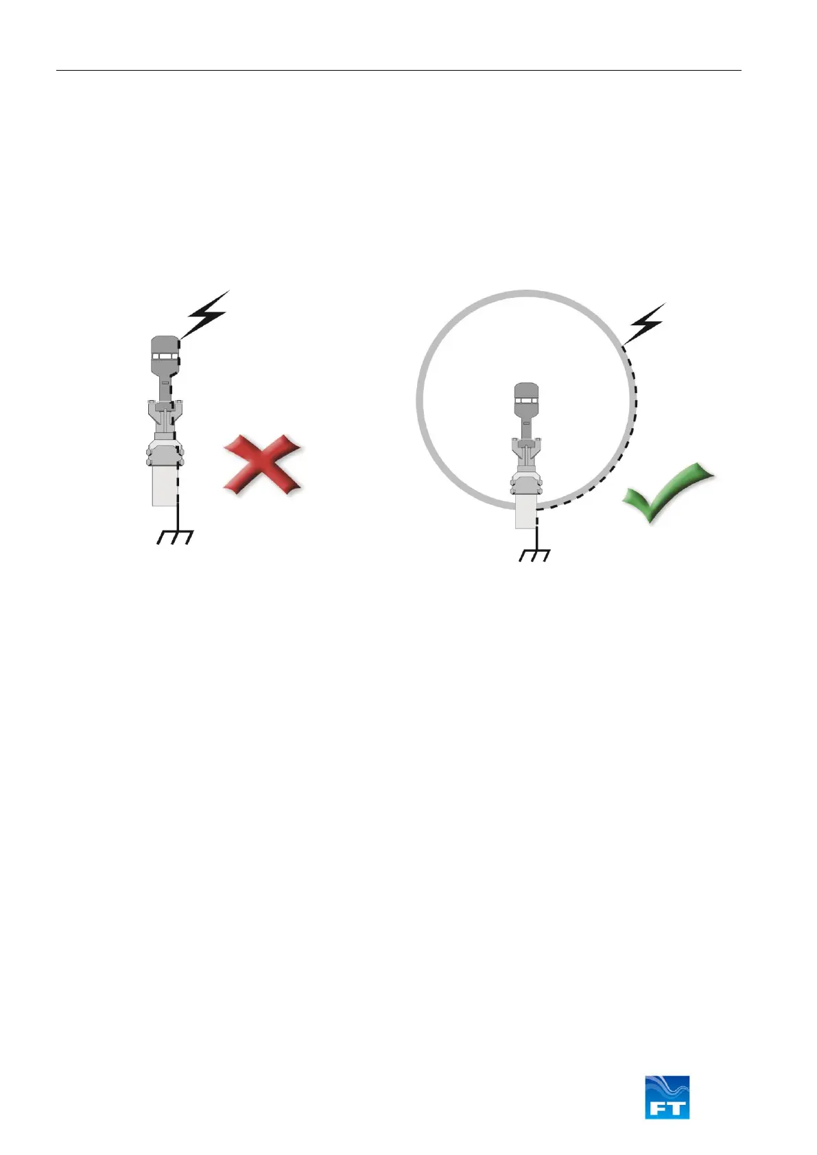 interceptors”. These help to create the protection zone and to divert the majority of the lightning current away to