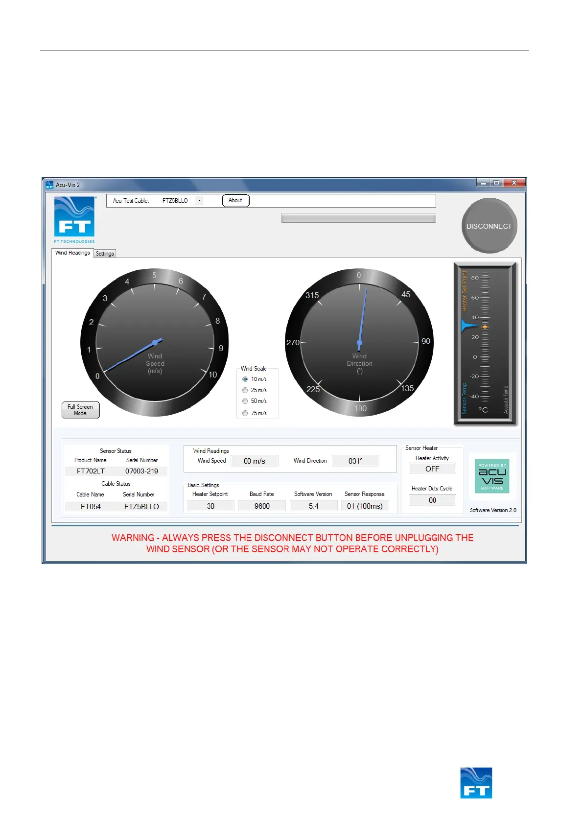 Note: Acoustic Temperature data requires software V7.5+ and an FT temperature calibration