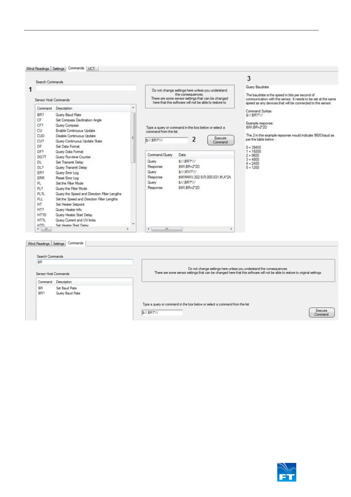 • Search for commands (for example: BR) or select them from the ‘Sensor Host Command’ menu. Selecting