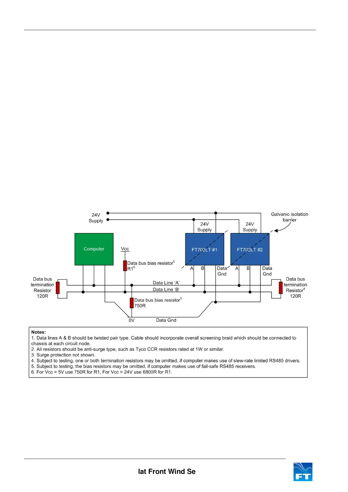 The FT702LT is fitted with an RS485 half-duplex serial interface. Slew-rate limited drivers are used to reduce