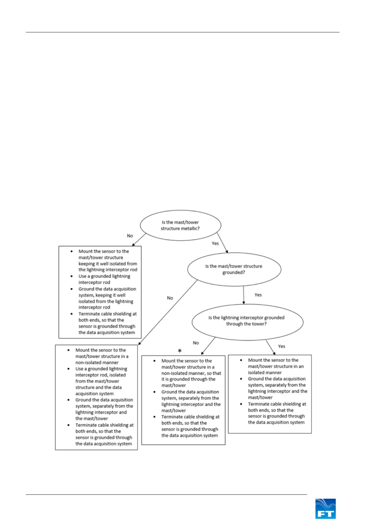 in a way that protects the sensor in the event of a lightning strike, if the site is deemed to be at risk. Since current