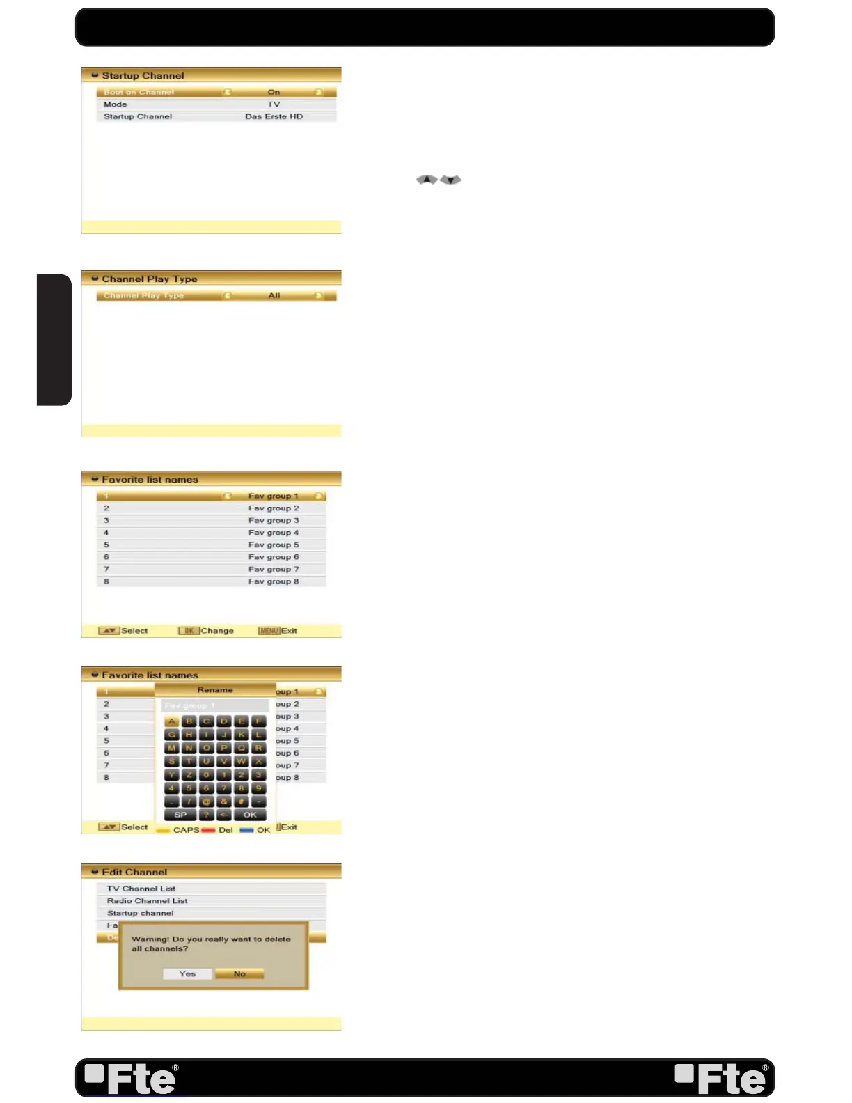 In this menu, user is able to change the name of the Favourite