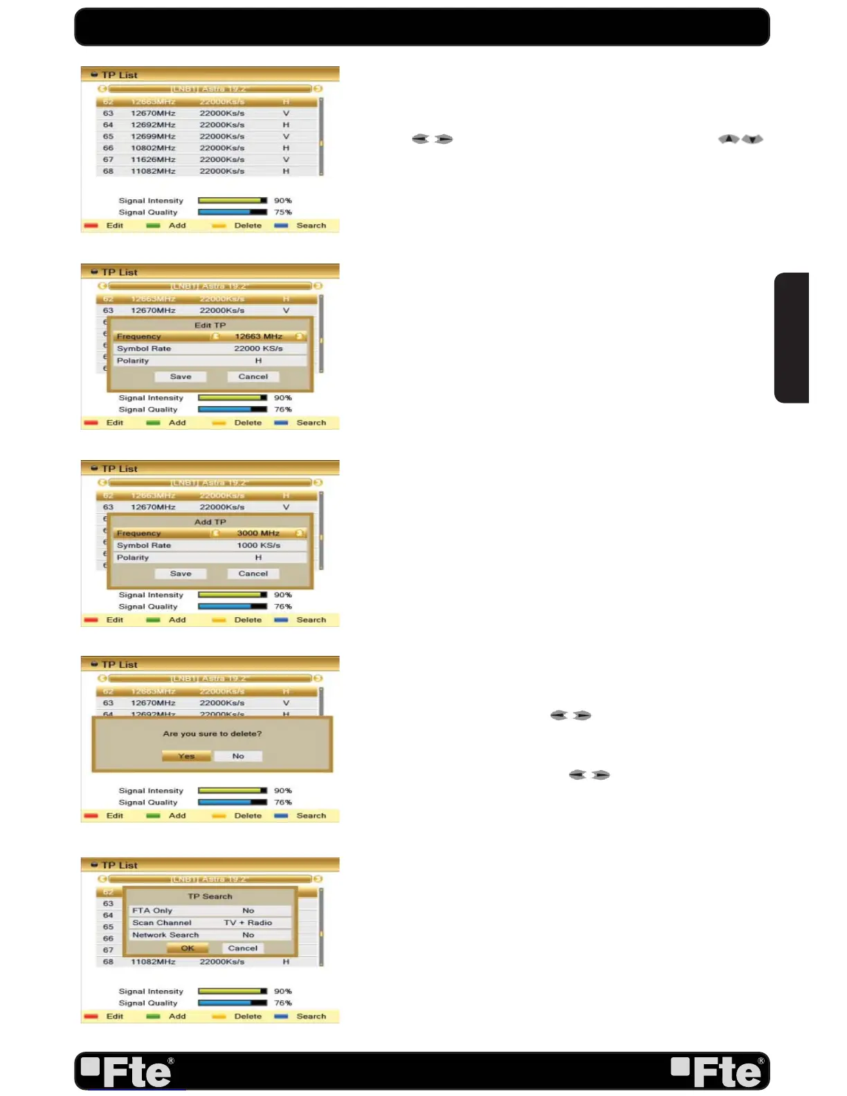 3. Press [Green] button to open the “Add TP” menu (OSD