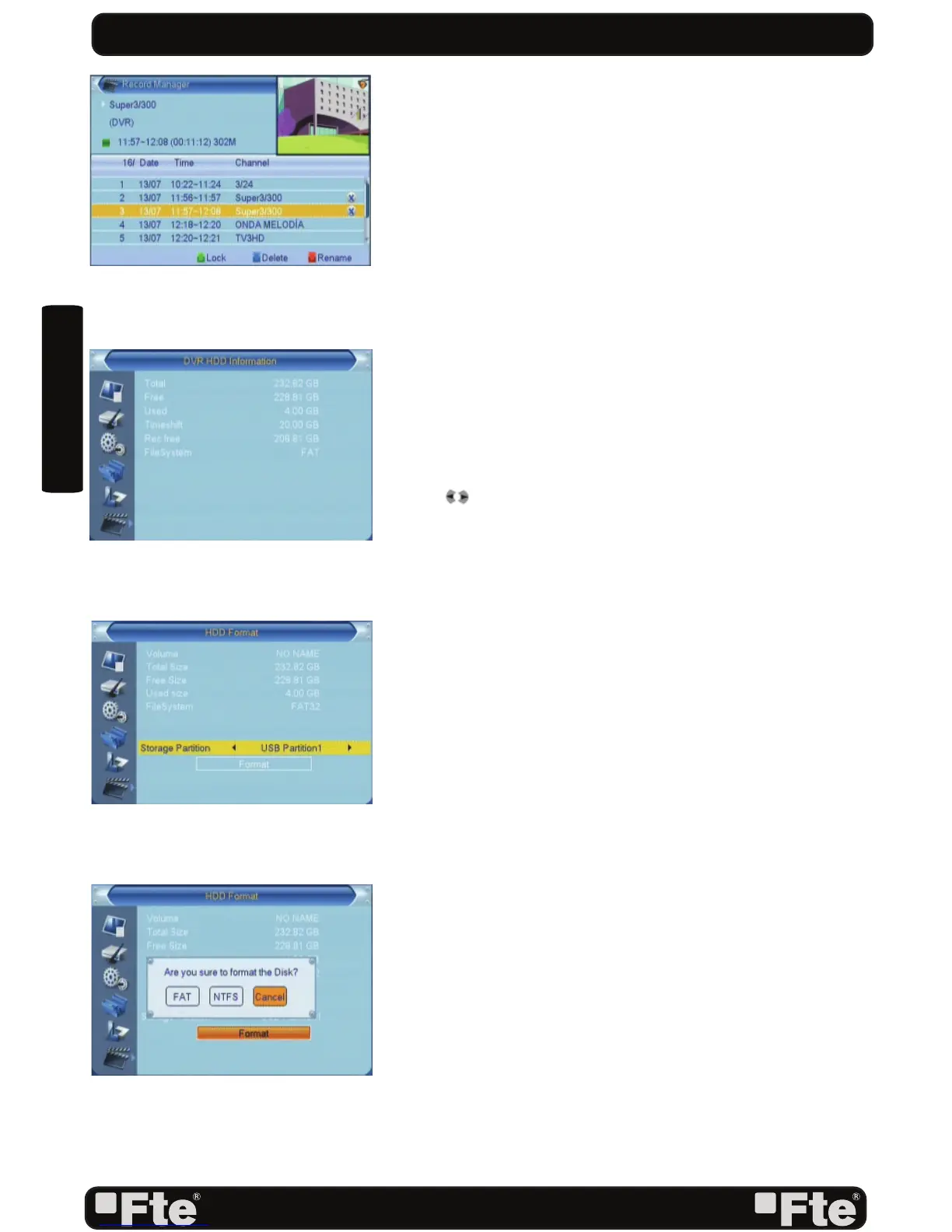 (OSD 64). Options: FAT or NTFS . Press [OK] over one of