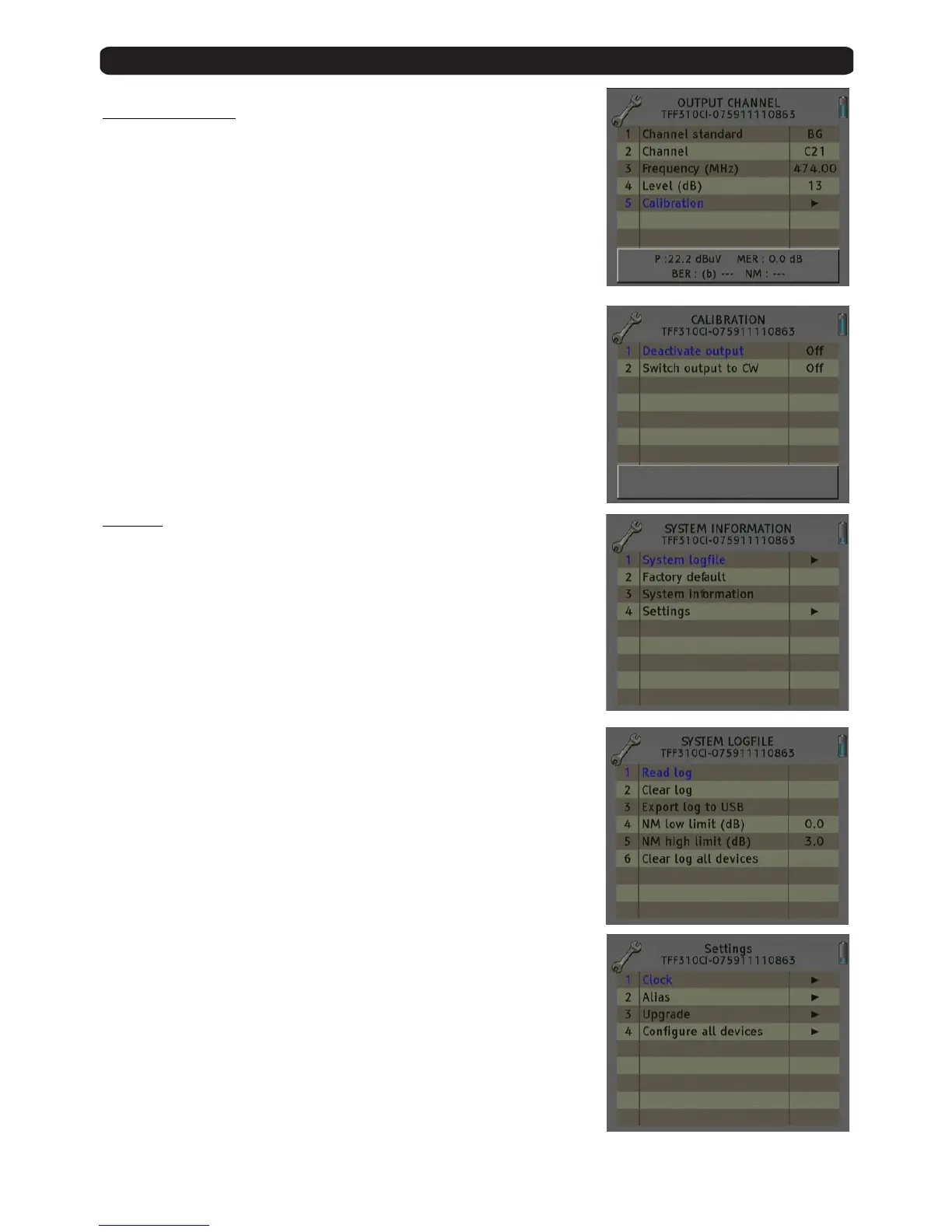In this option you can configure the different parameters of the cable signal.