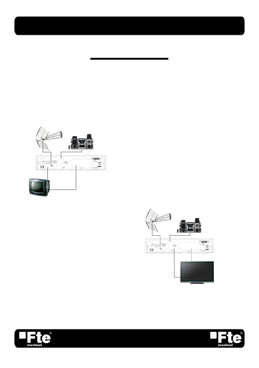 Ligue a entrada “RF IN” do receptor a saída da toma de antena da sua casa (TV), e a saída do receptor indicada