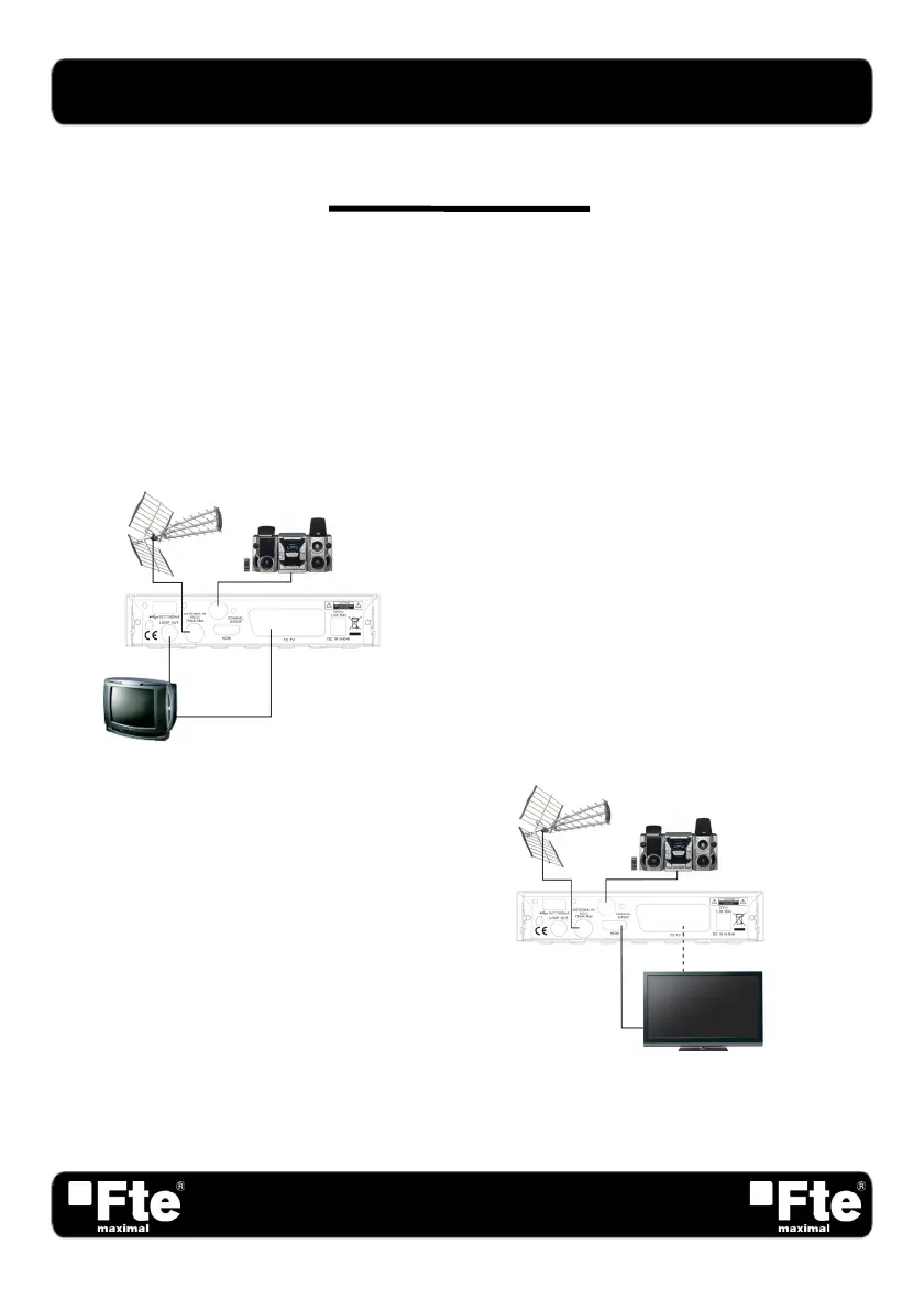 Conecte la entrada “Antenna IN” del receptor a la salida de la toma de antena de su vivienda (TV), y la salida del