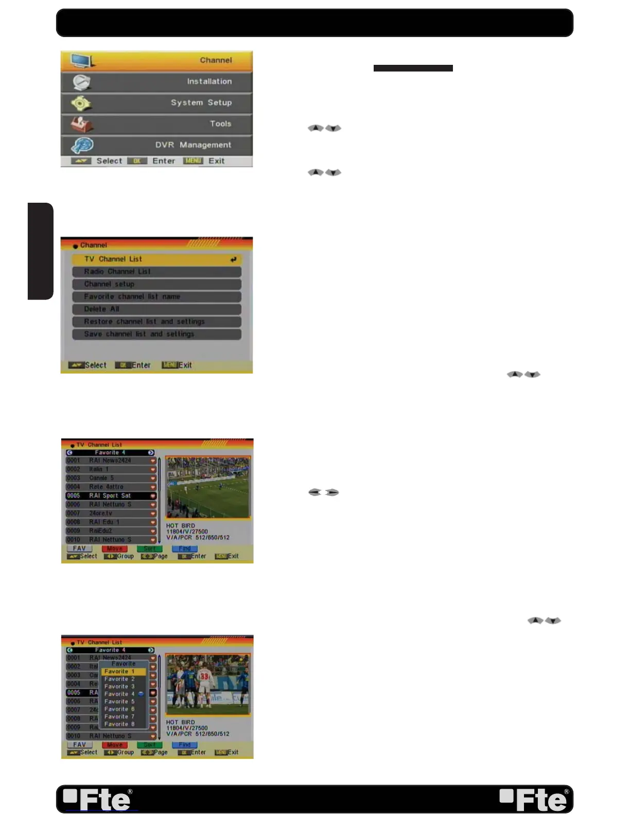1. Press [FAV] to open the Favourite window (OSD 23).