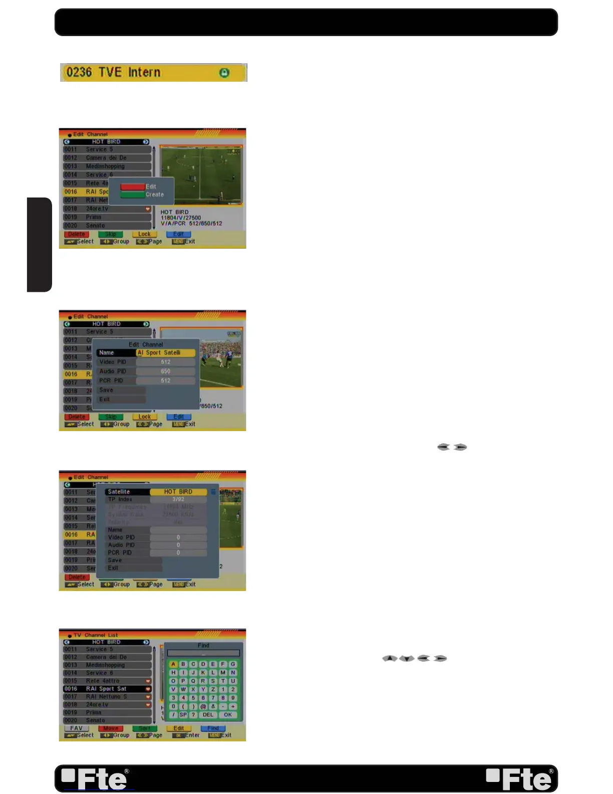 1. Edit current channel: To edit the channel press the [Red]