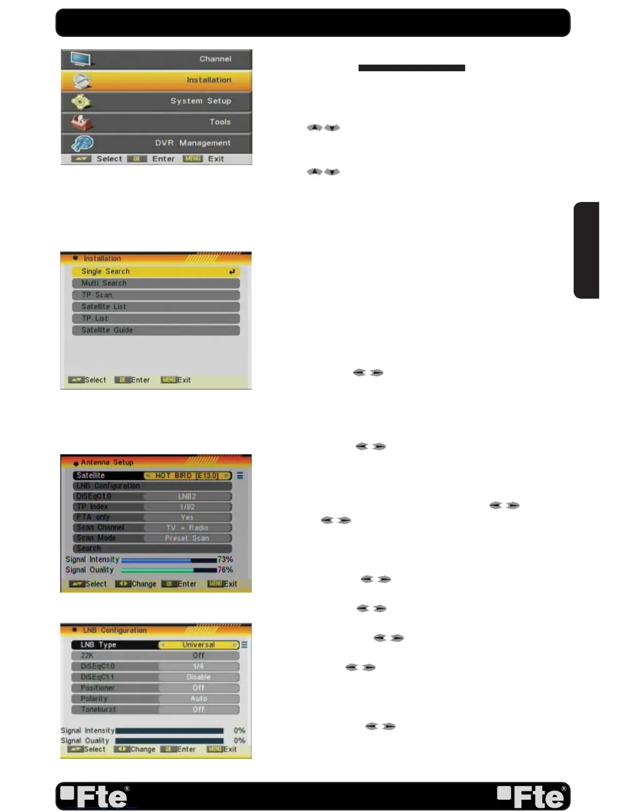- LNB Type: Press [ ] to switch among “Standard”, “User”