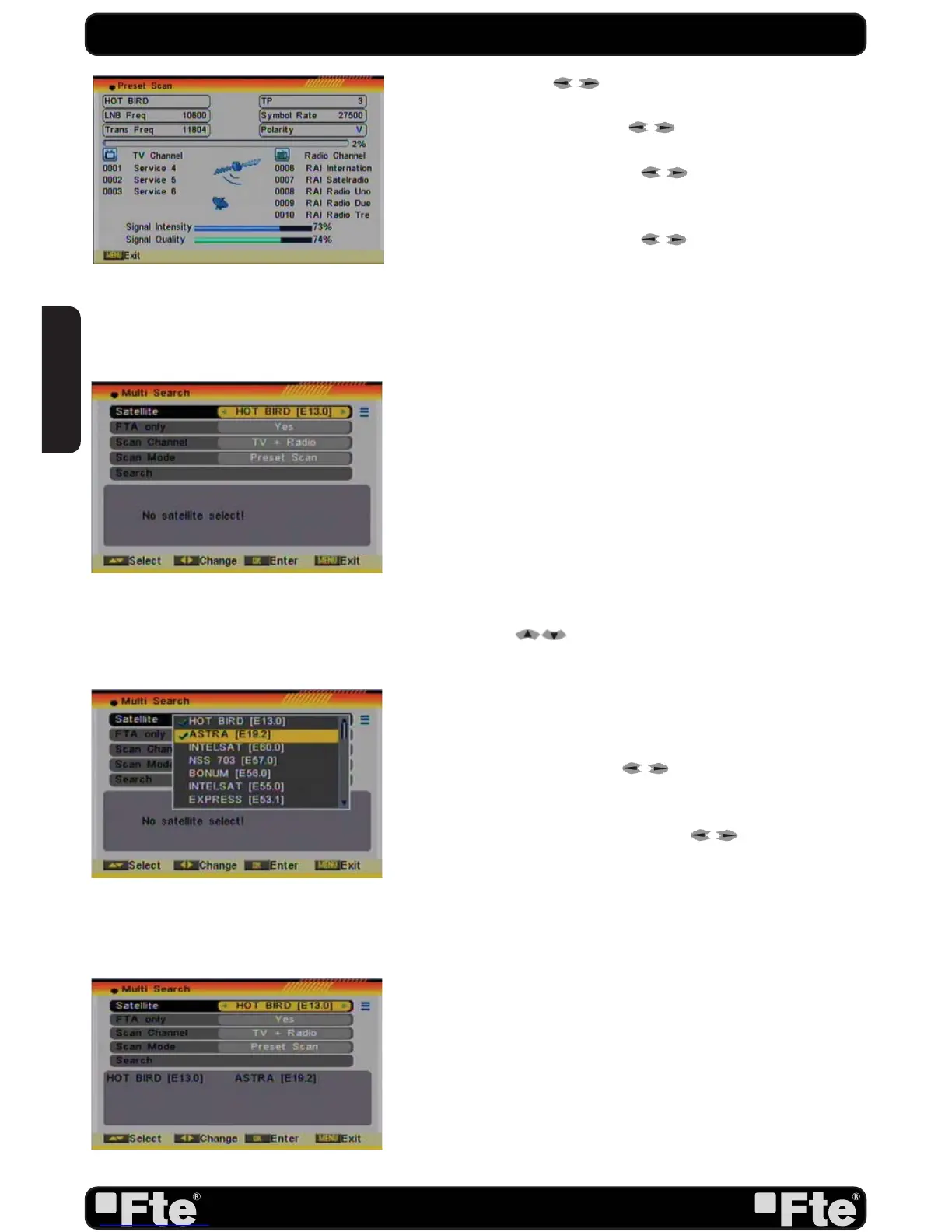 or “Preset Scan” to scan all preset transponders.