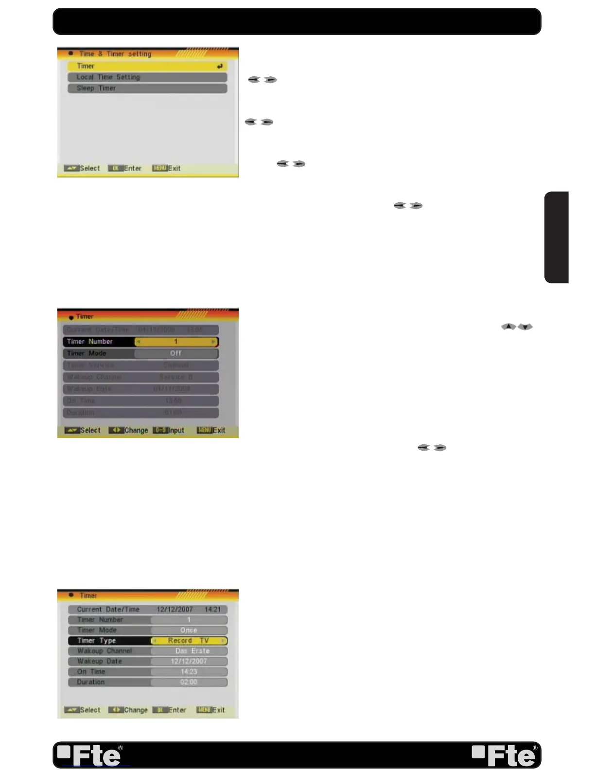 When you enter “Time” “Local Time Setting” or “Sleep Timer” a
