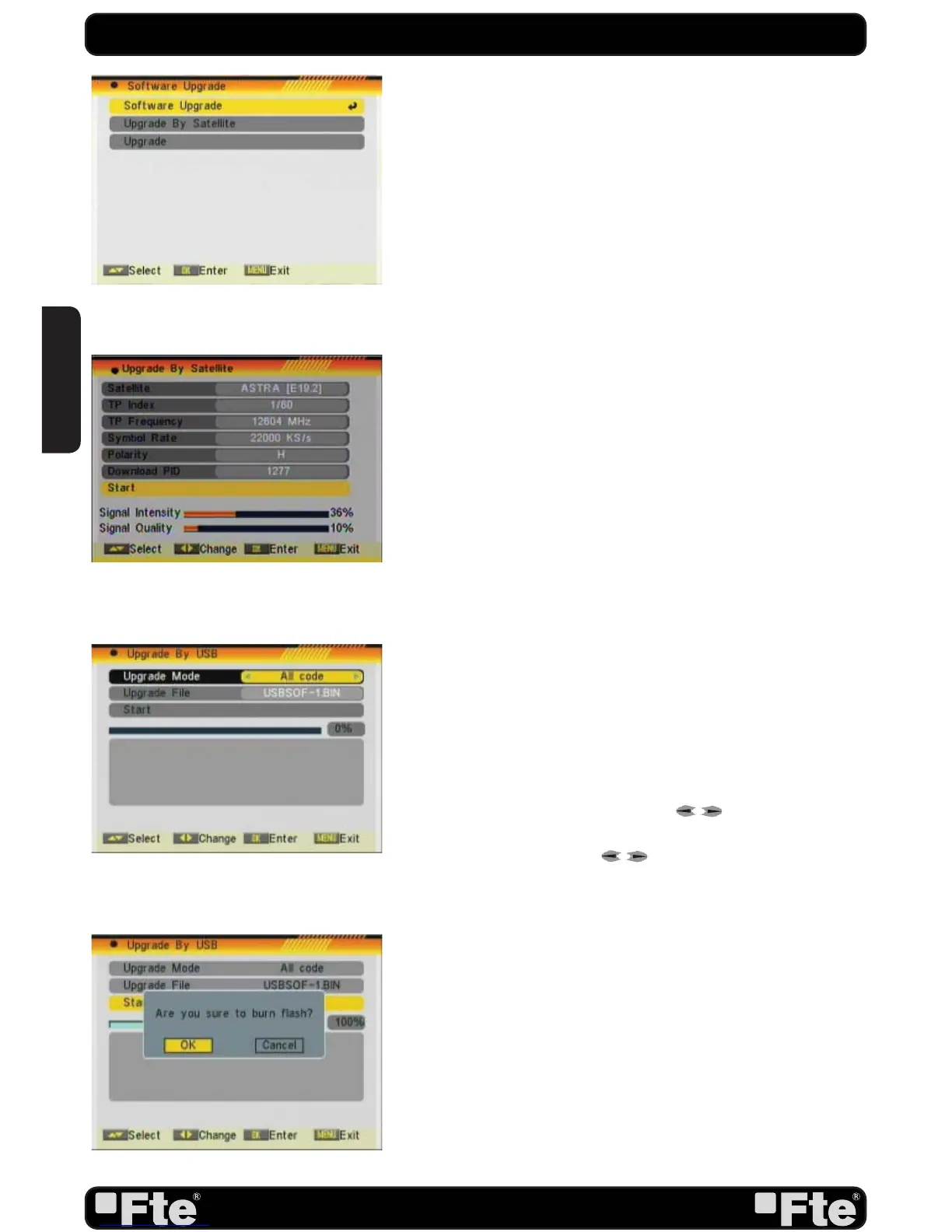 upgrading. Press [OK] to upgrade the receiver (OSD 92). In