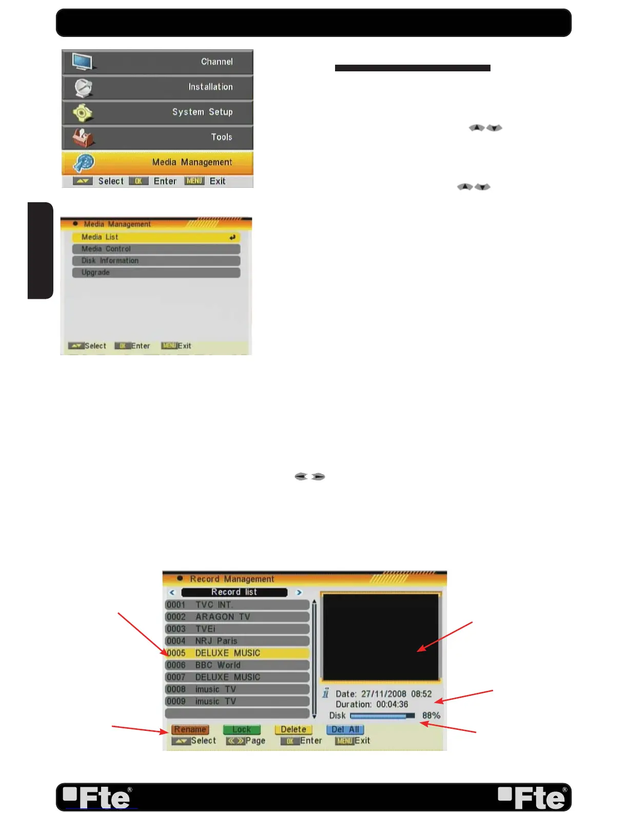 - Multimedia Player (MP3 List, Picture List, Video List, List of