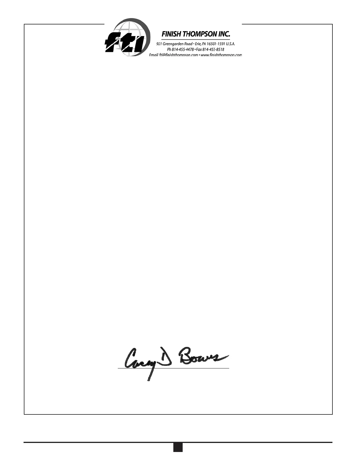 Finish Thompson Inc. hereby declares that the following machines fully comply with the applicable