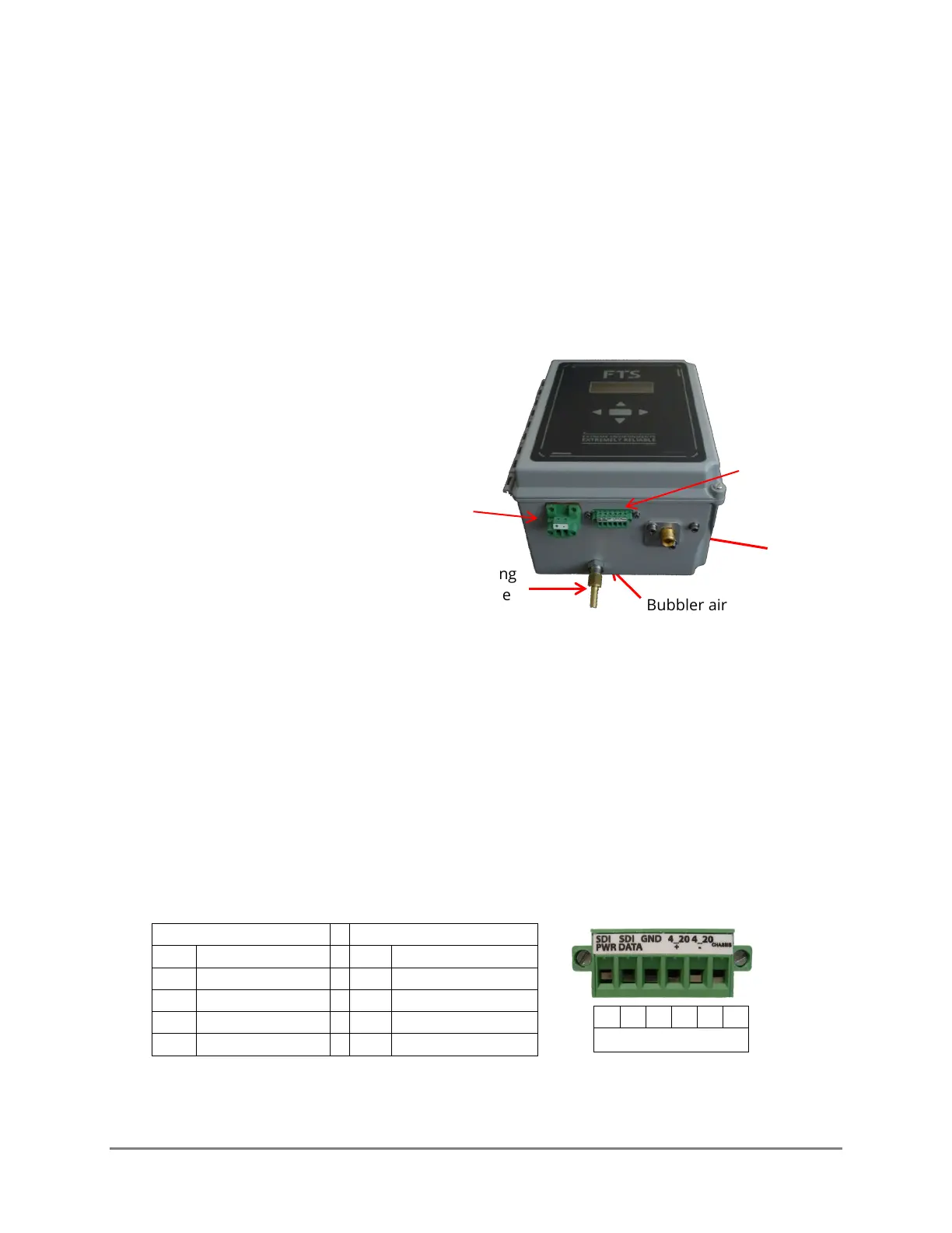 flying leads from the data logger to the Bubbler’s data terminal strip as shown.