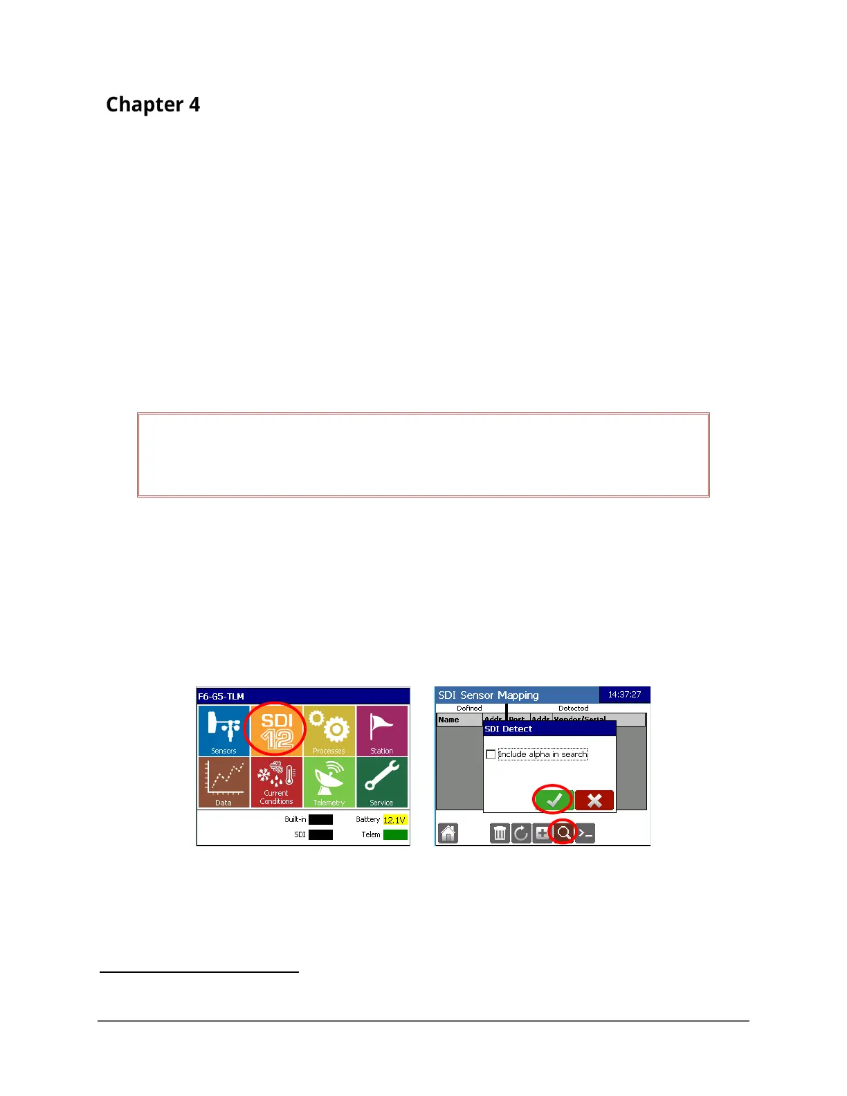From the Datalogger’s Home screen, select the SDI-12 icon and then the Search icon. Select OK on