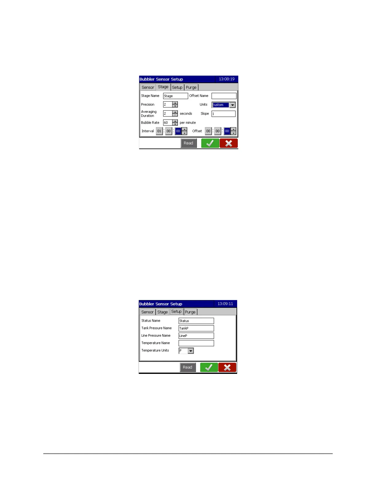calculate the displayed stage value. It takes approximately 2 seconds to take a sample. The