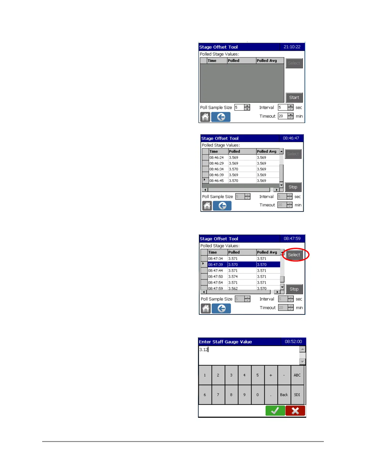 6. The Enter Staff Gauge Value screen