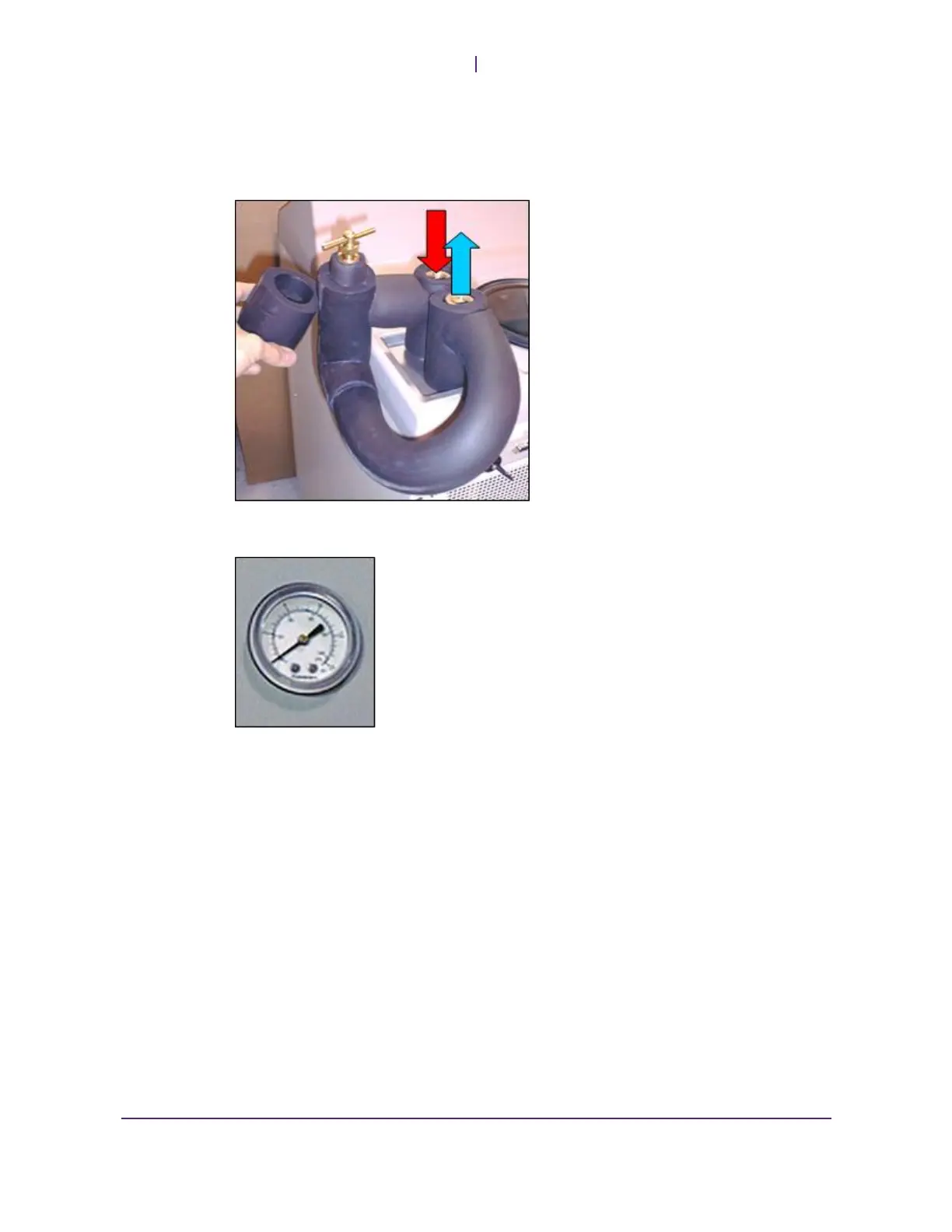 The pressure gauge on the front panel of the machine shows the system pressure.