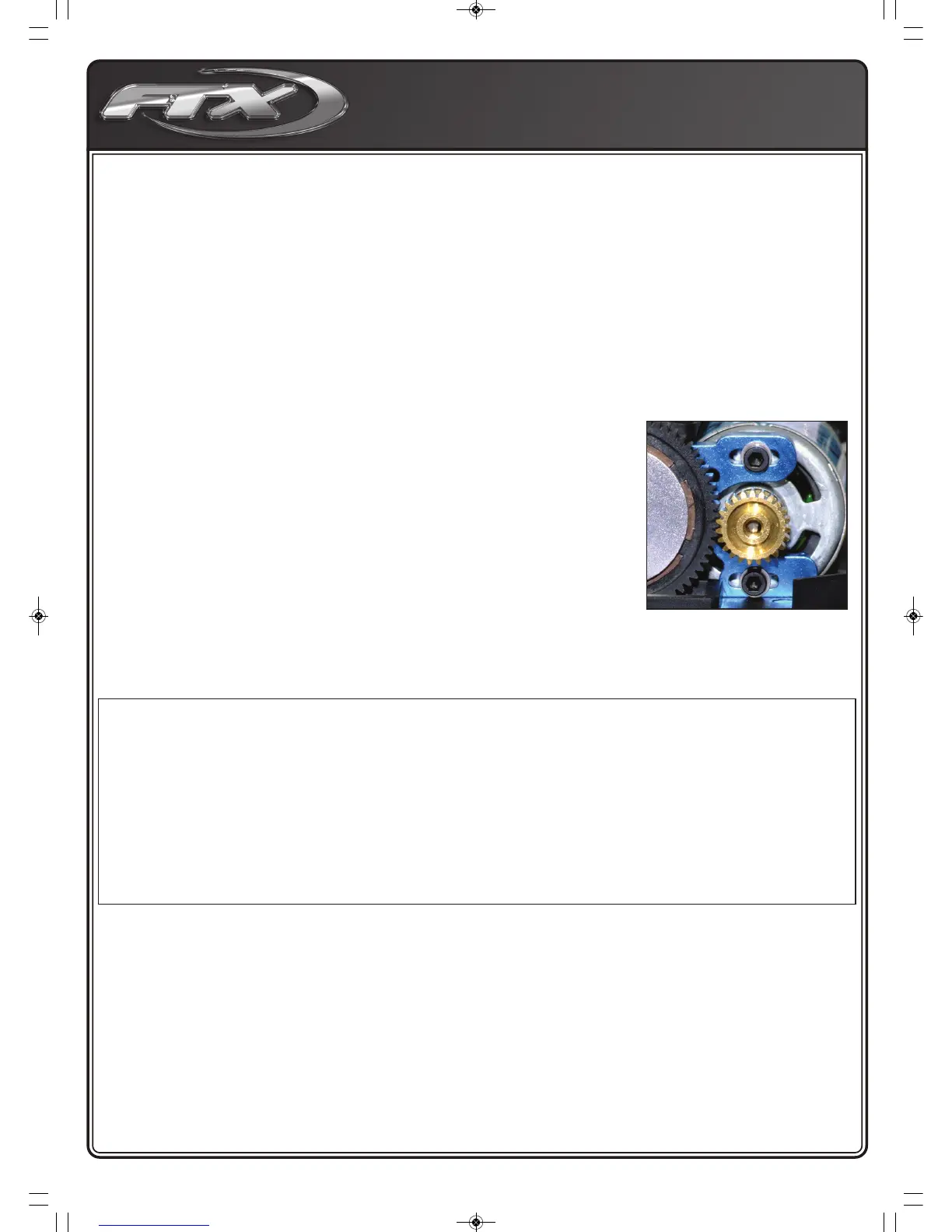the motor retaining screws and adjust the motor until there is just discernable backlash between pinion and