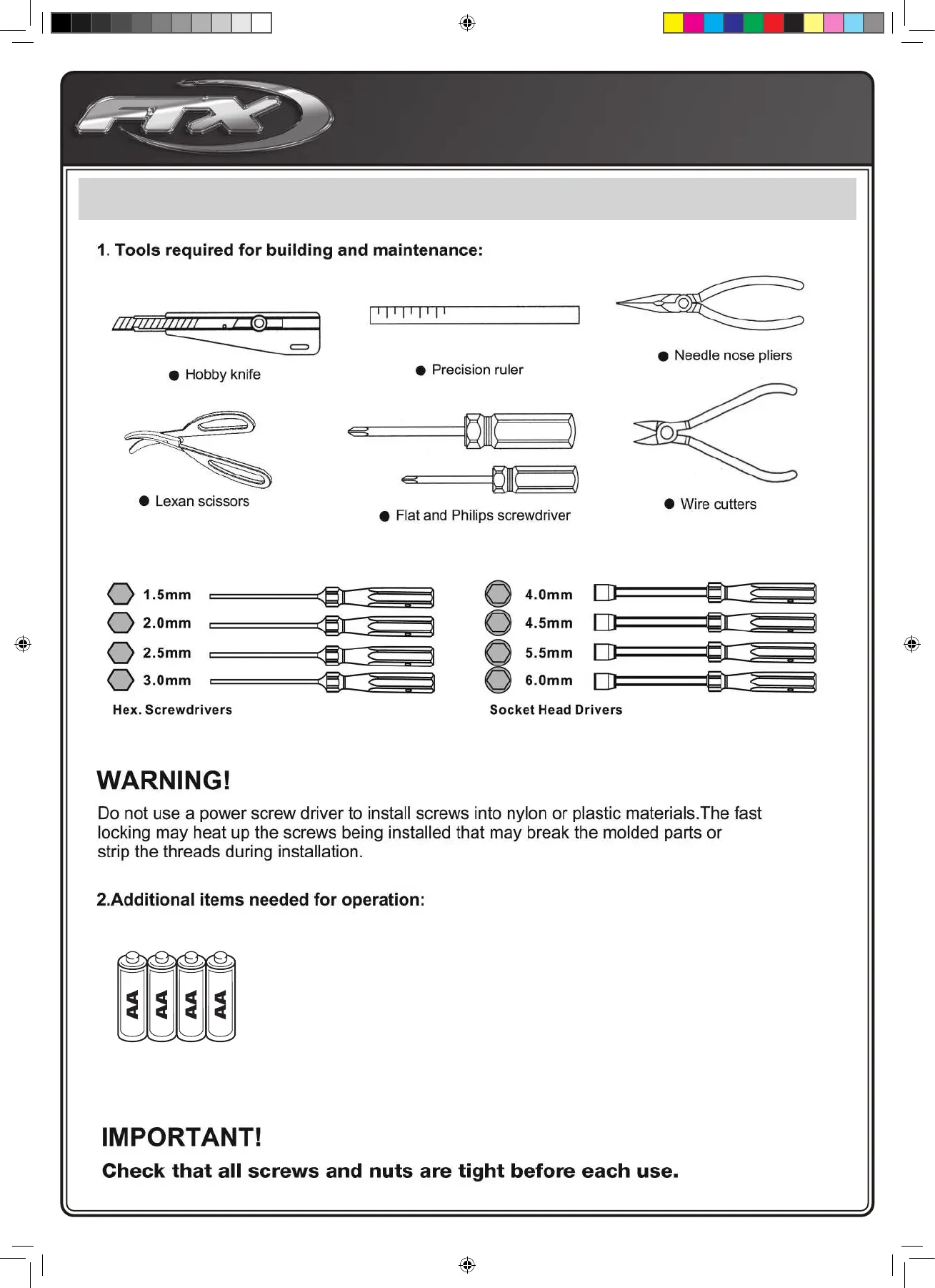 FTX Carnage 2.0 Brushless - Required Equipment for Operation; Tools for Building and Maintenance; Additional Items Needed