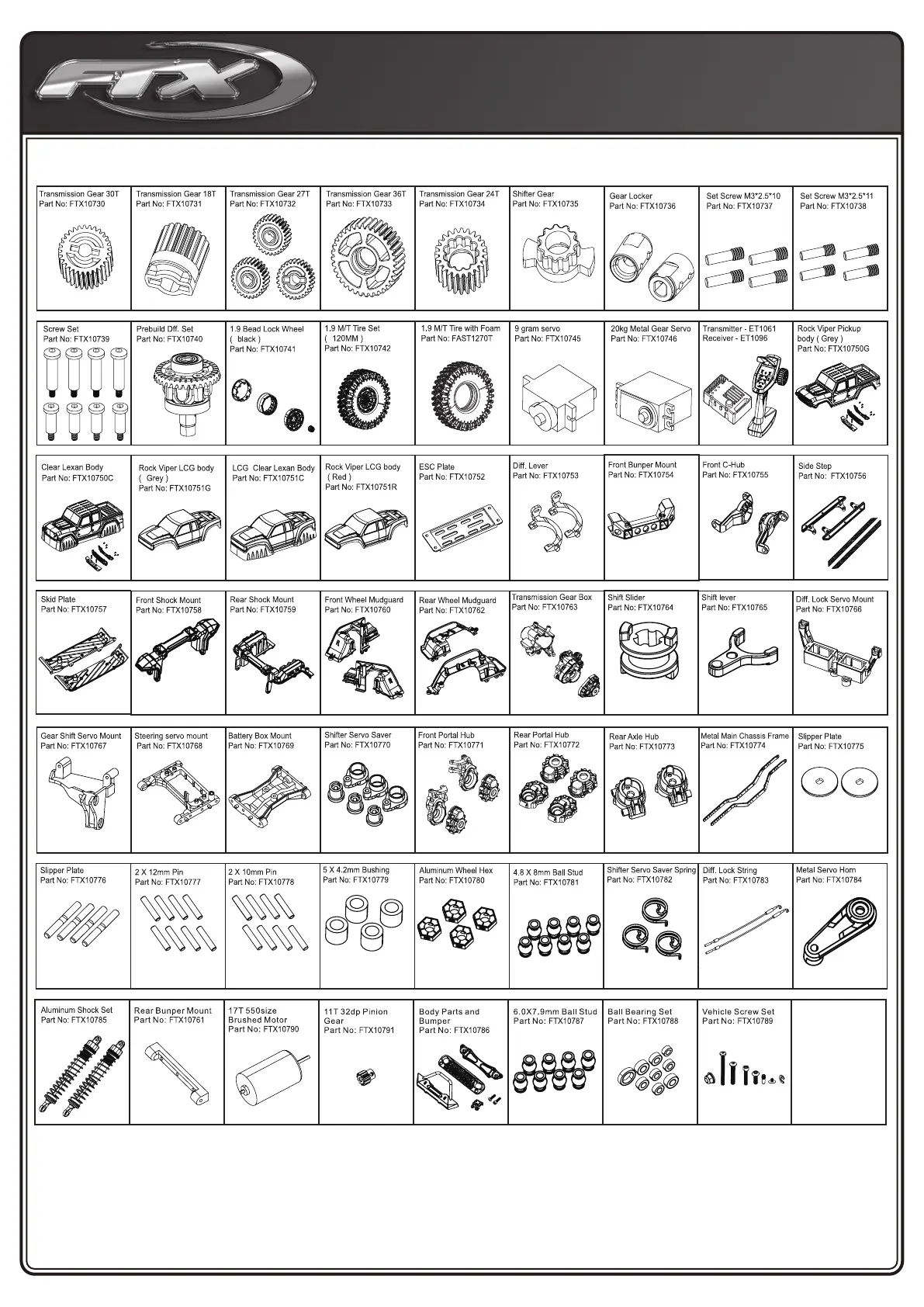 FTX GLADIUS - Transmission and Gearbox Components; Wheels, Tires, and Bodies; Electronic Components and Servos; Suspension and Chassis Mounts
