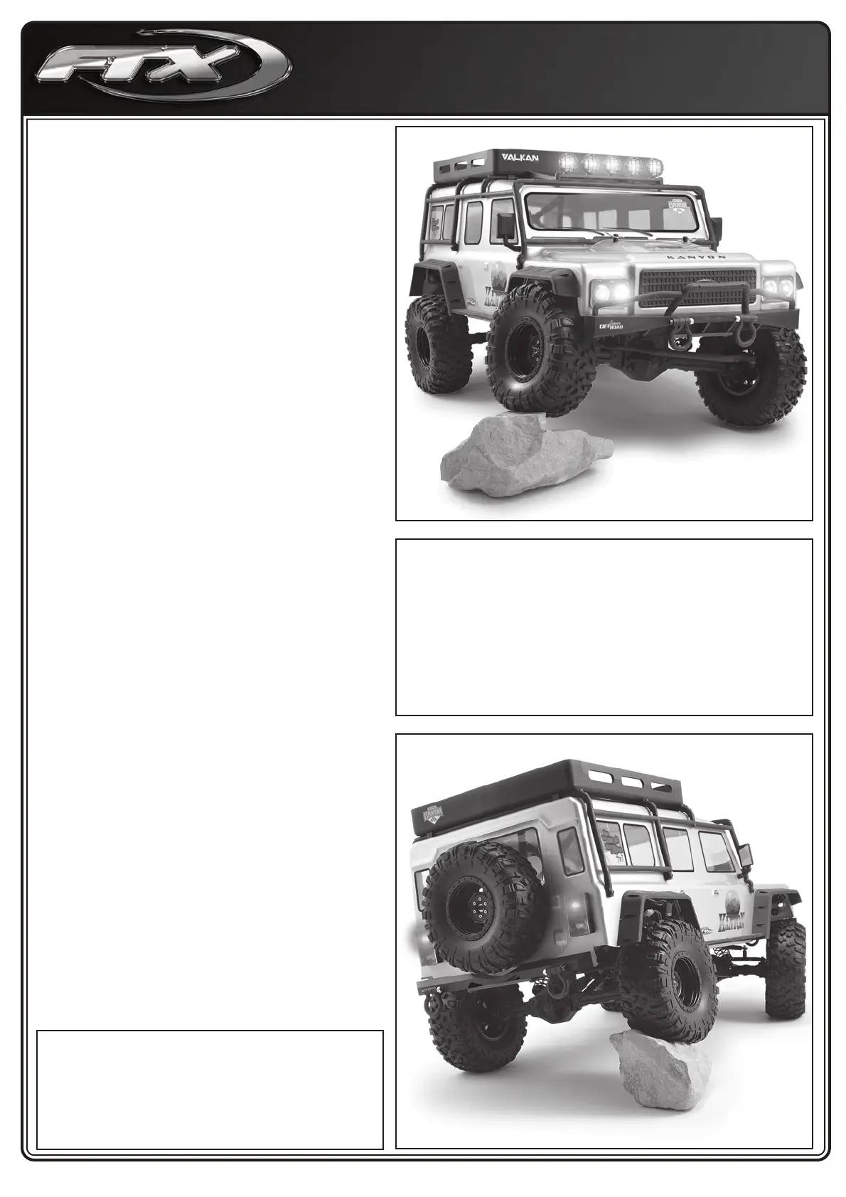 Merci d’avoir choisi le FTX Kanyon Une voiture de Trail 4*4 à l’échelle