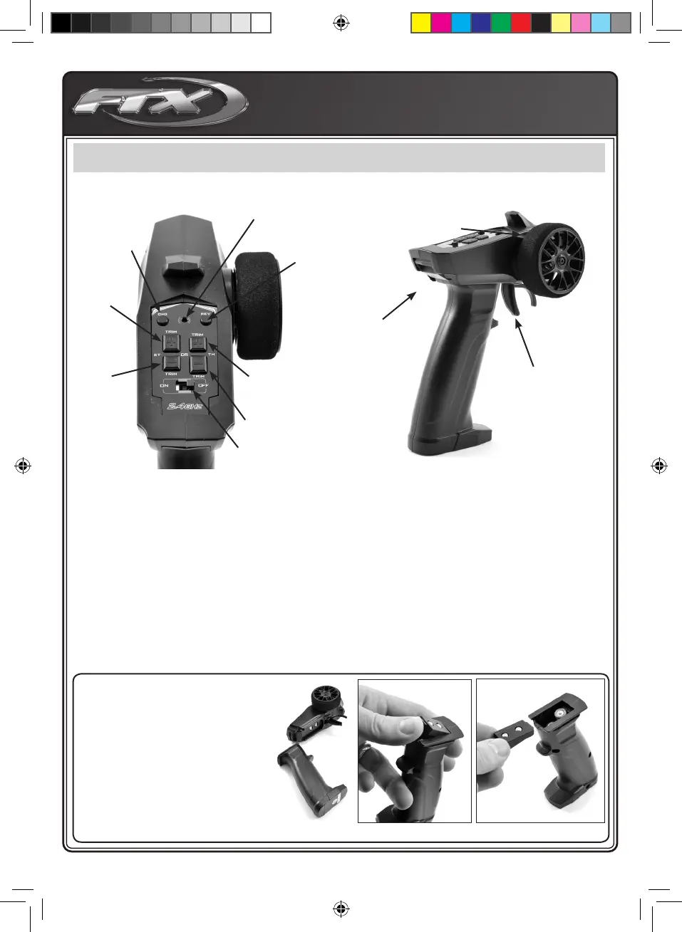 • Trims de la direction / des gaz : Vous permet d’ajuster la position du neutre de la direction / des gaz an d’aligner vos roues et de mettre au neutre votre