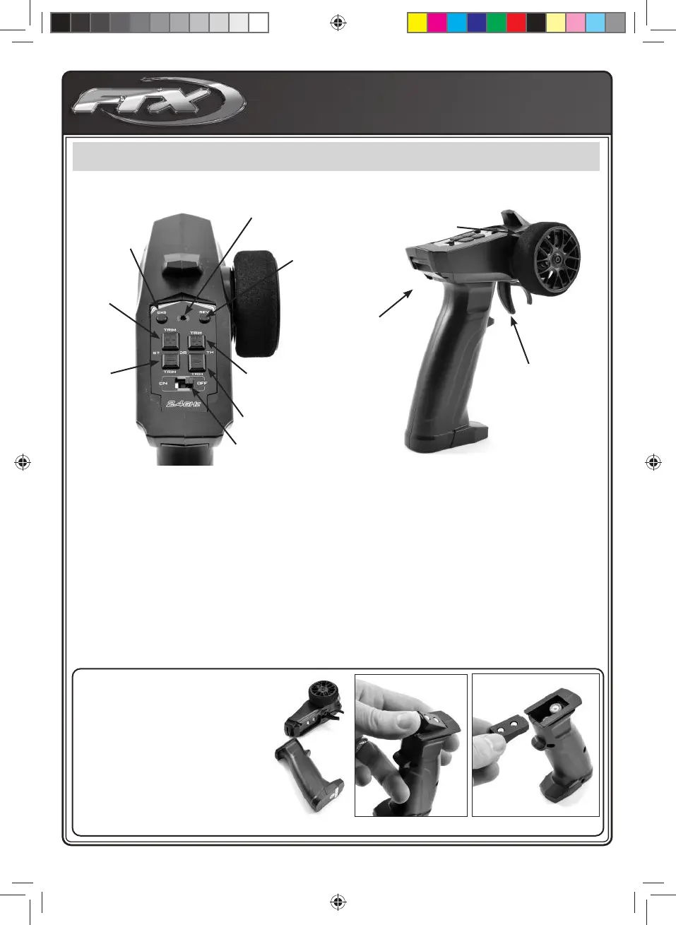 • Trims de la direction / des gaz : Vous permet d’ajuster la position du neutre de la direction / des gaz an d’aligner vos roues et de mettre au neutre votre
