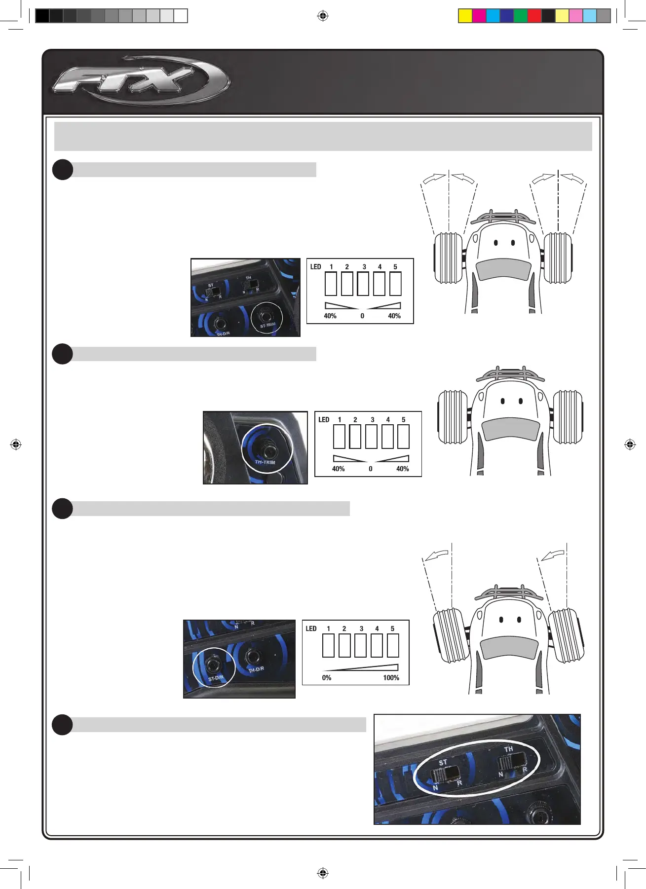 La molette ST-TRIM permet d’ajuster le trim de la direction an de centrer les roues avant et donc de faire