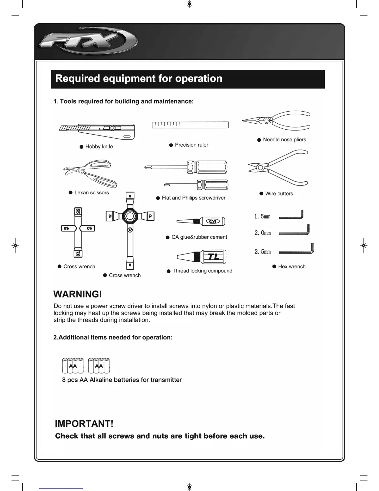 FTX Vantage - Getting Started and Setup; Required Equipment for Operation
