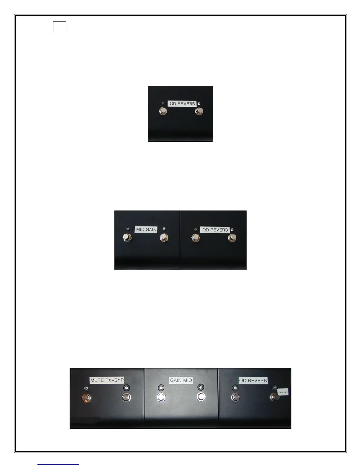 switching and reverb on/off. The artist footswitch requires: HIGH, MID, OUTPUT front