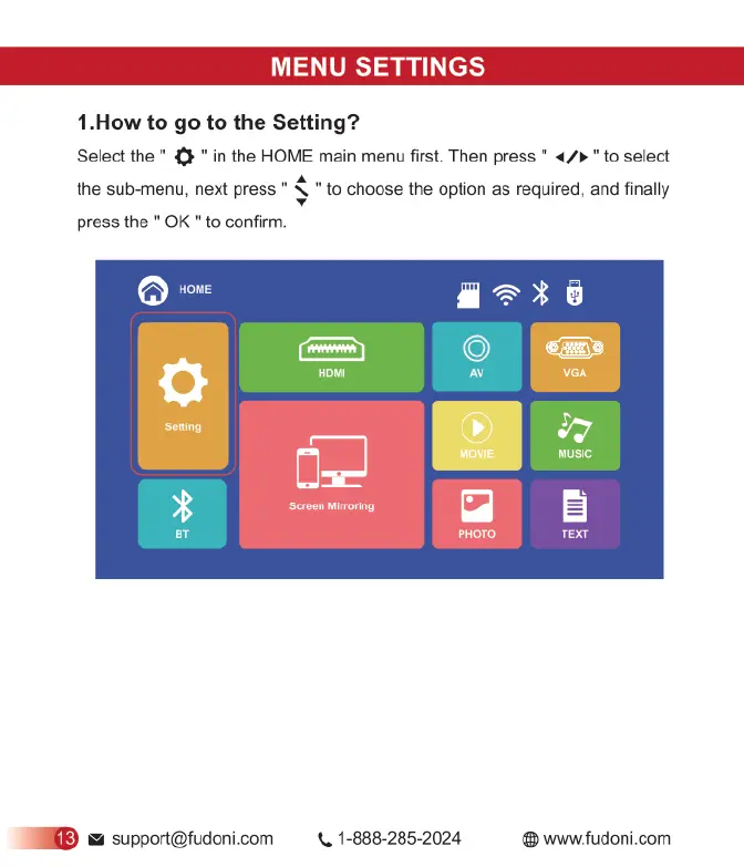FUDONI P1 - Menu Settings Guide; Navigating to the Settings Menu