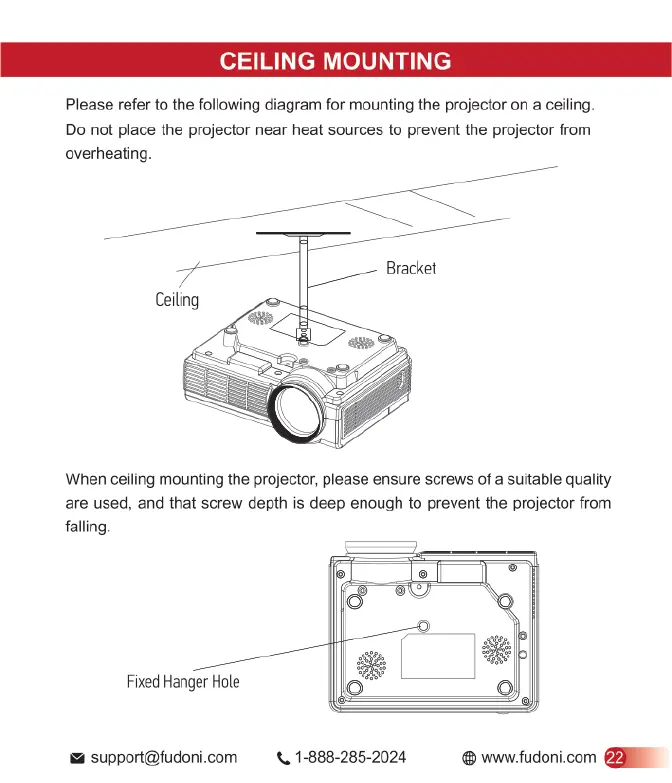 FUDONI P1 - Ceiling Mounting Instructions; Ceiling Mounting Procedure and Precautions