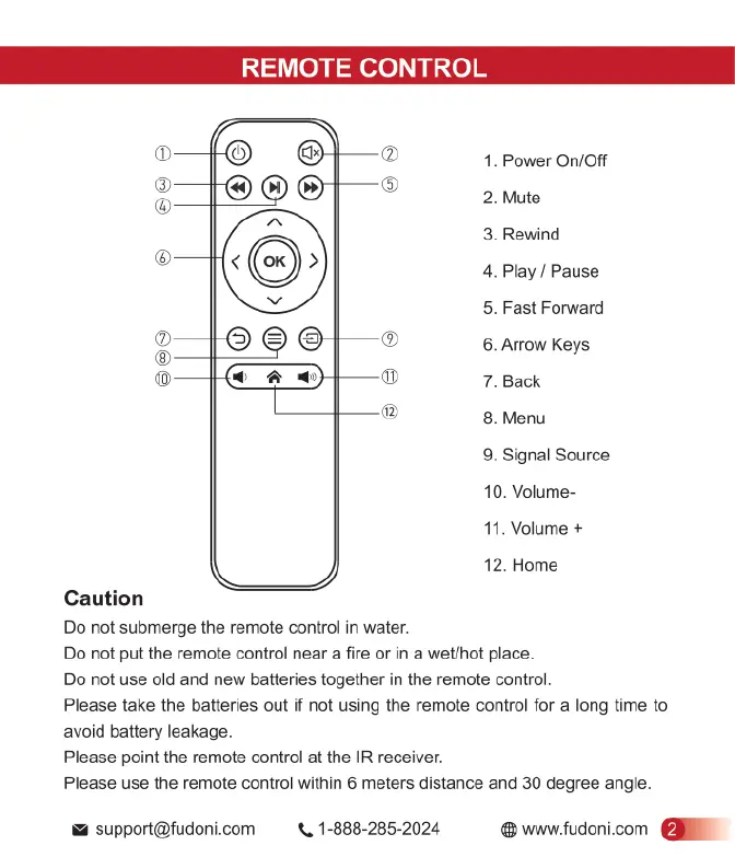FUDONI P1 - Remote Control Guide; Remote Control Functions Overview; Remote Control Safety Precautions
