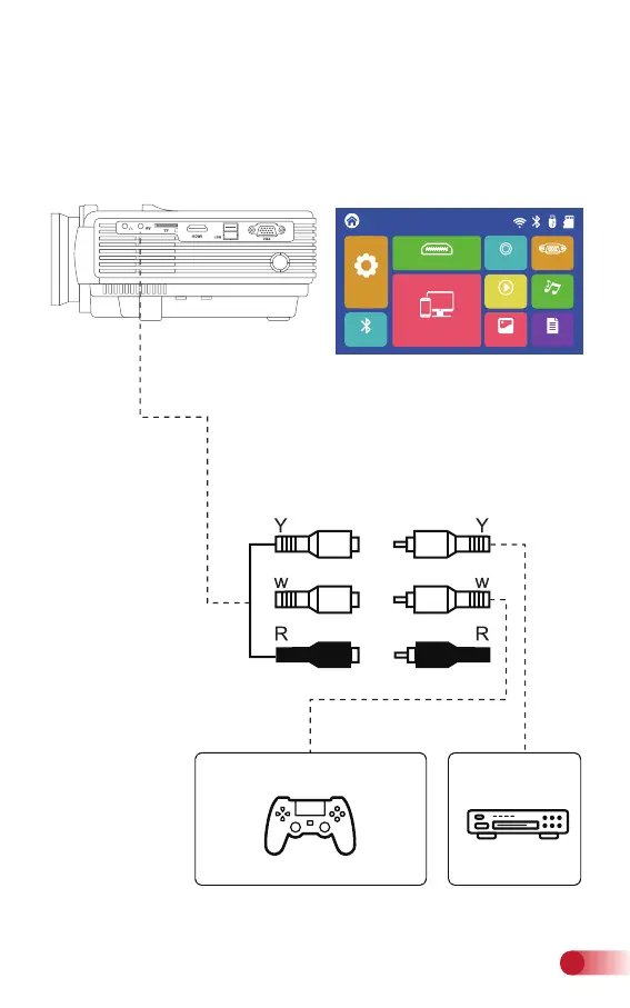 Use a 3-in-1 AV cable to connect to the projector as shown below.
